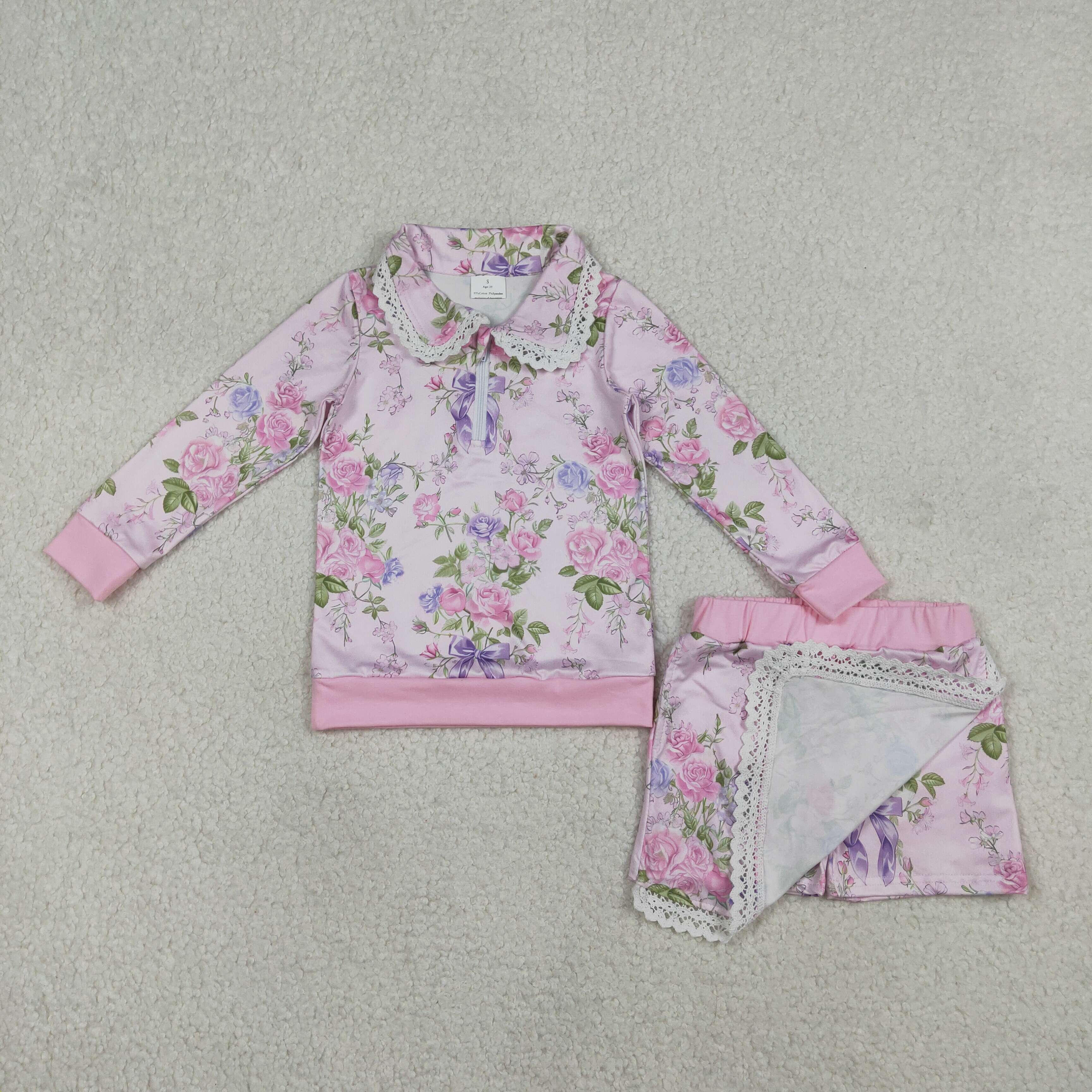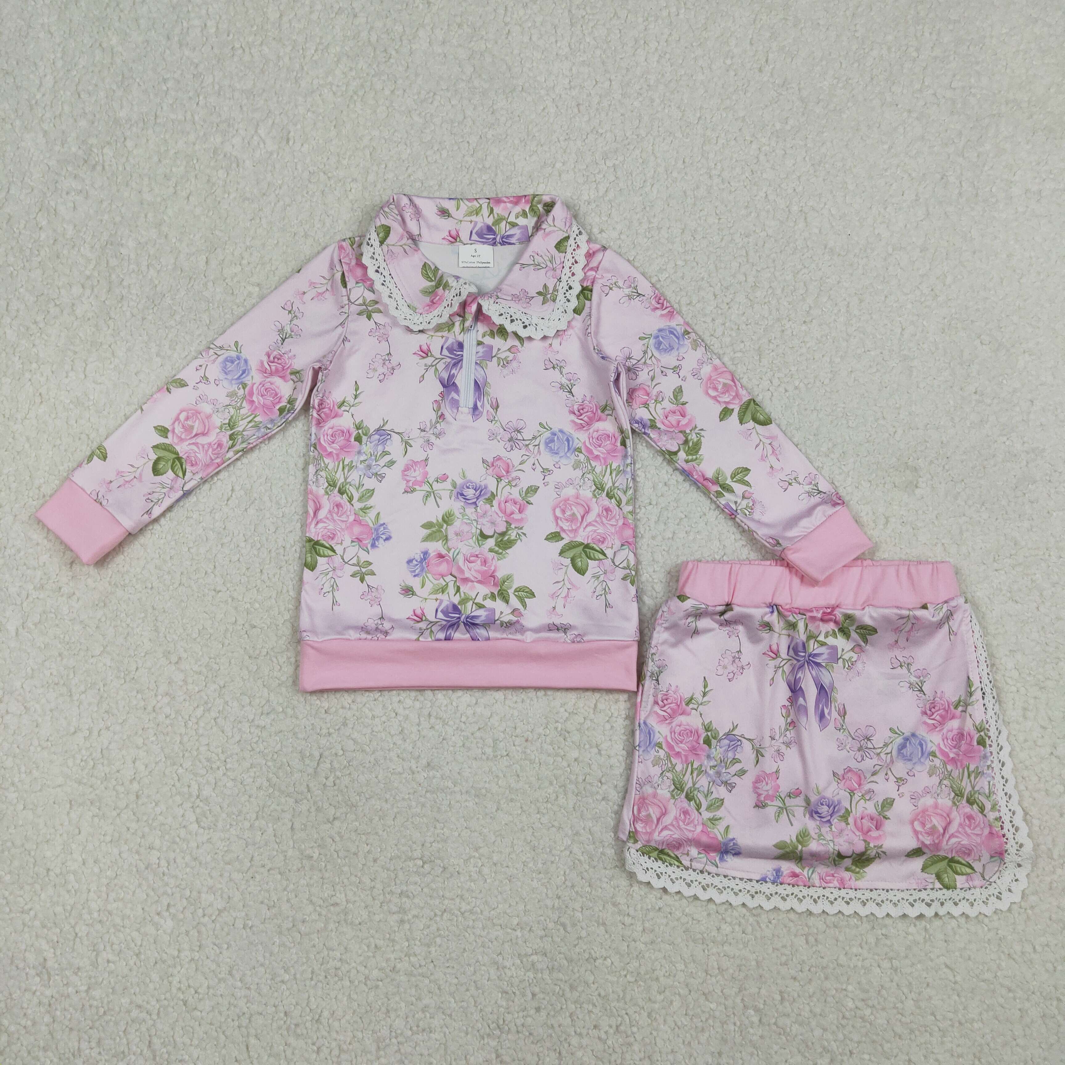 GLD1572 RTS baby girl clothes floral print toddler girl winter skirt outfit