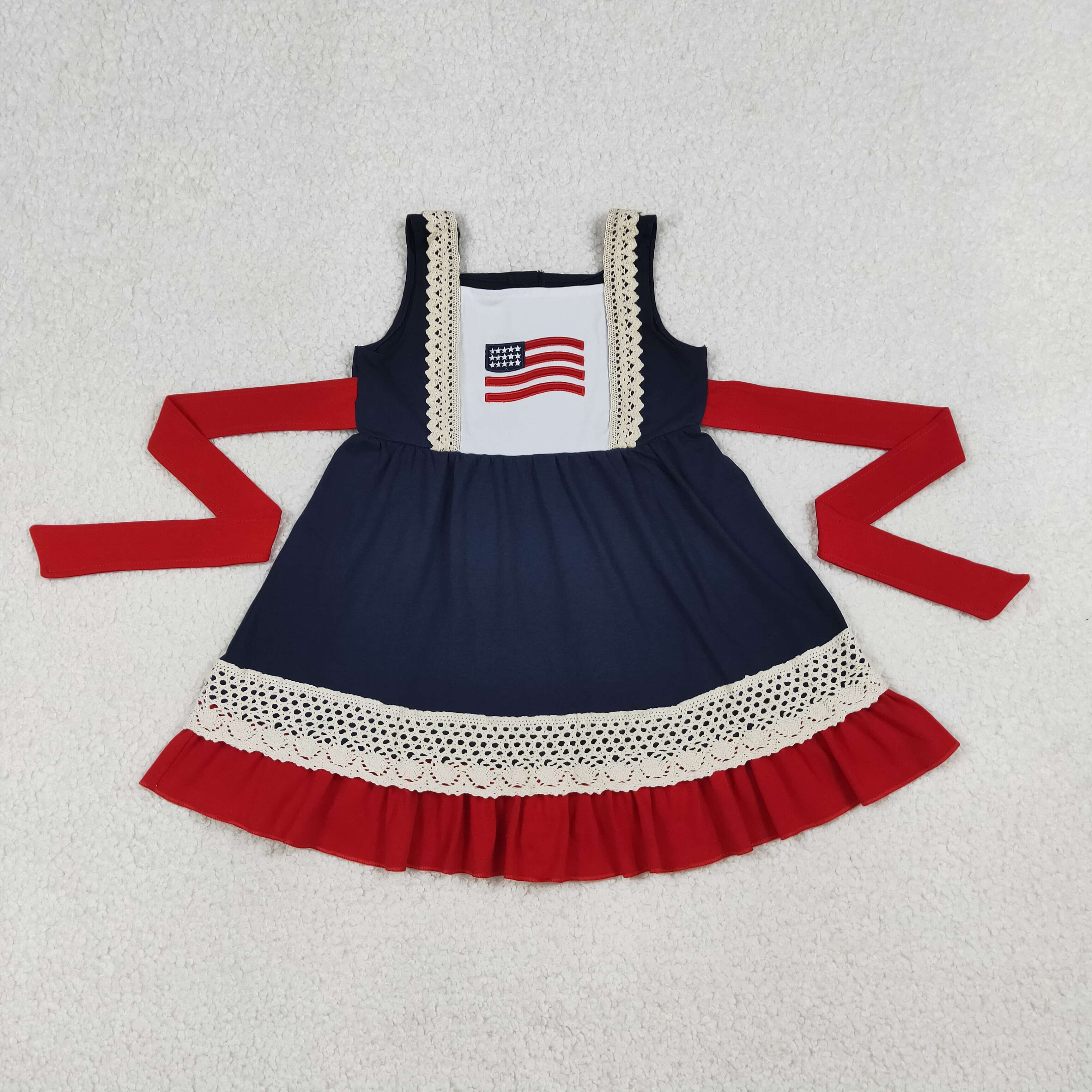 GSD4087 Pay attention to the sizes RTS kids girl clothes 4th of July flag embroidery girl summer dress