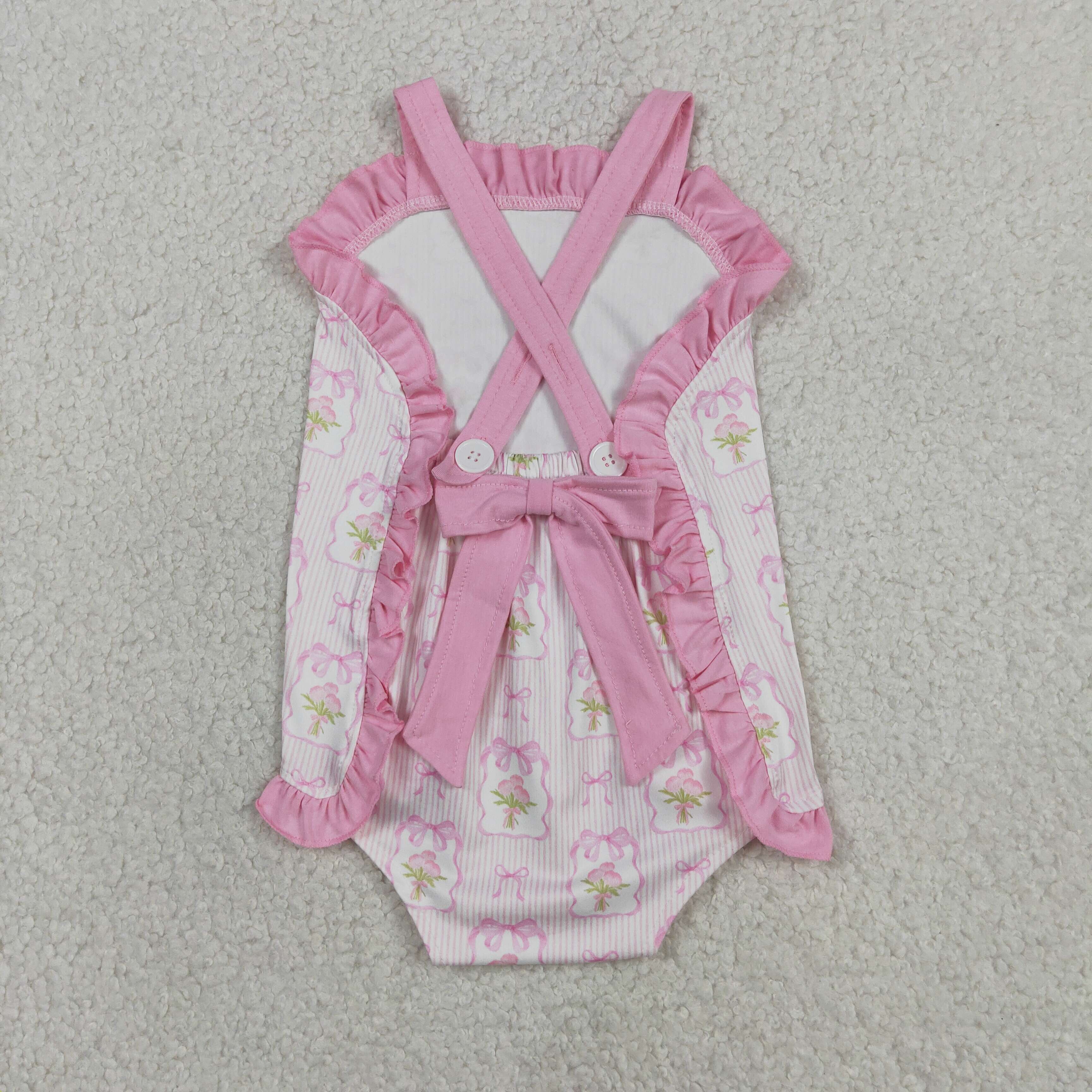 RTS SR3763 baby girl clothes pink bows print toddler girl summer romper
