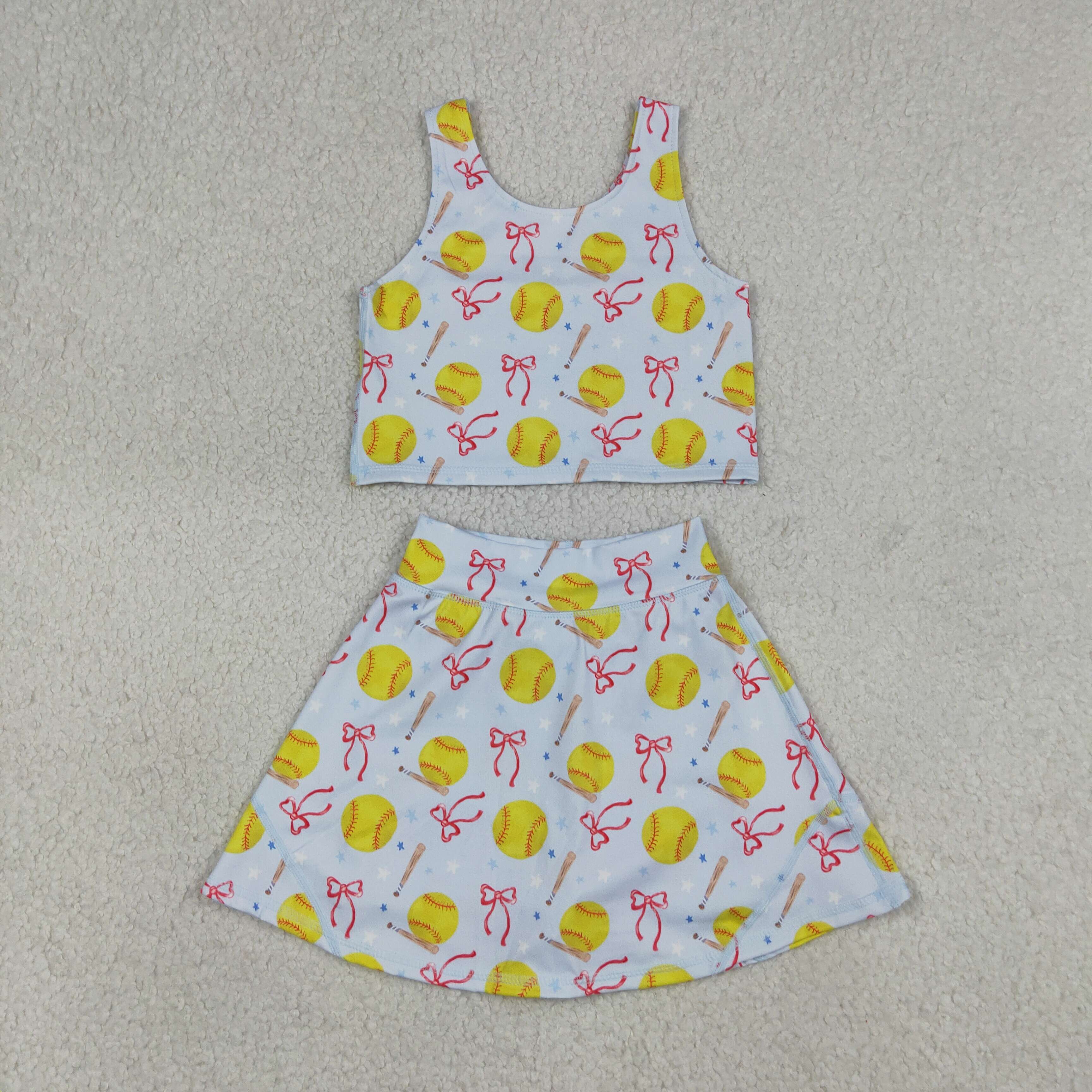 GSD3836 RTS toddler clothes softball girl summer yoga set sports outit