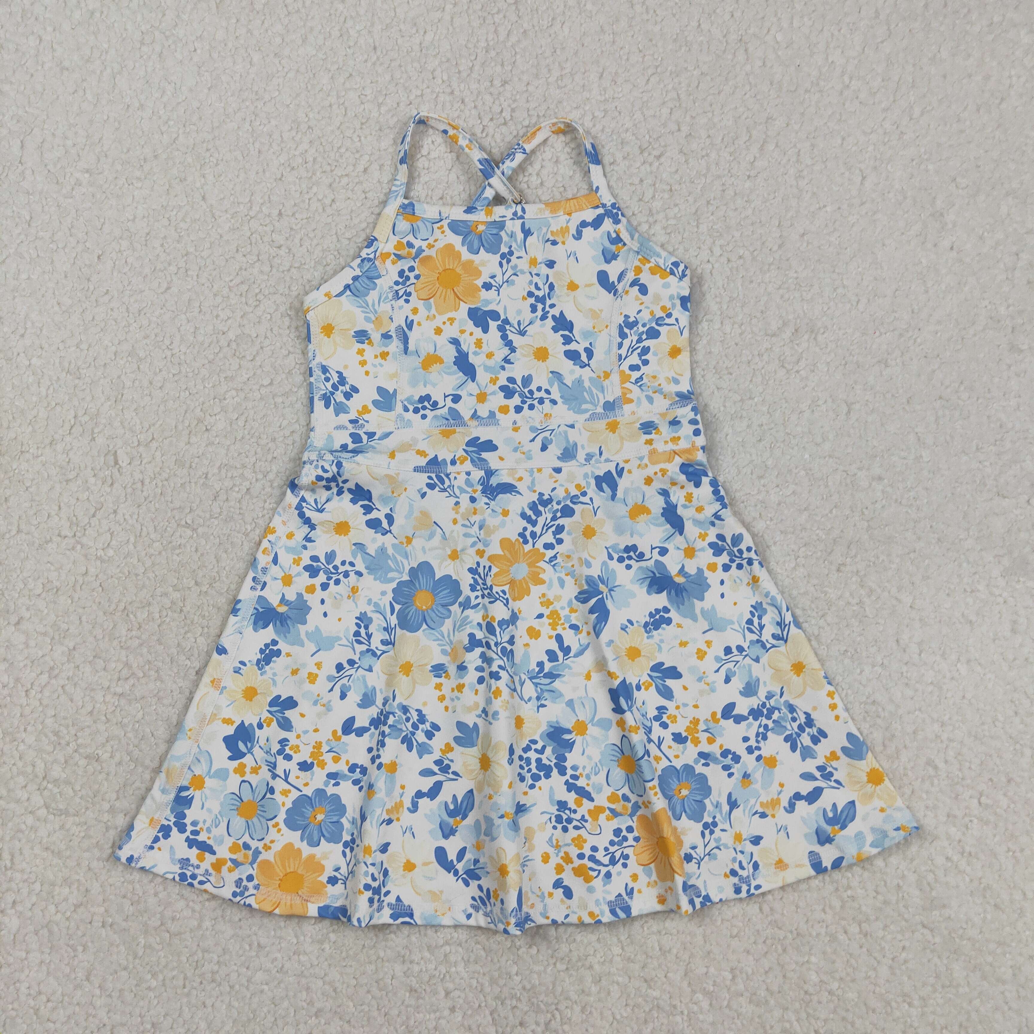 S0713 RTS baby girl clothes blue girl summer sports dress yoga atheletic dresses beach wear yoga wear
