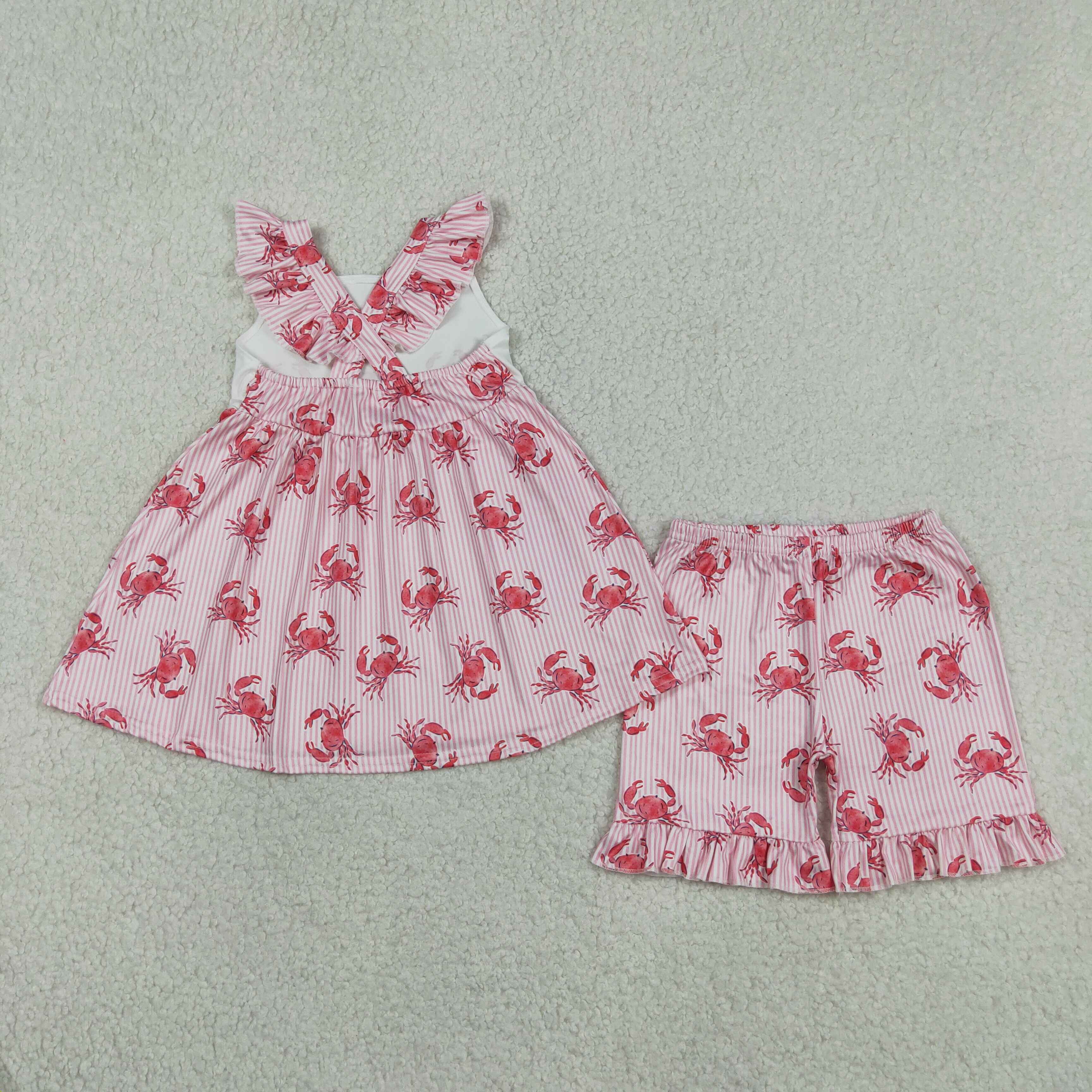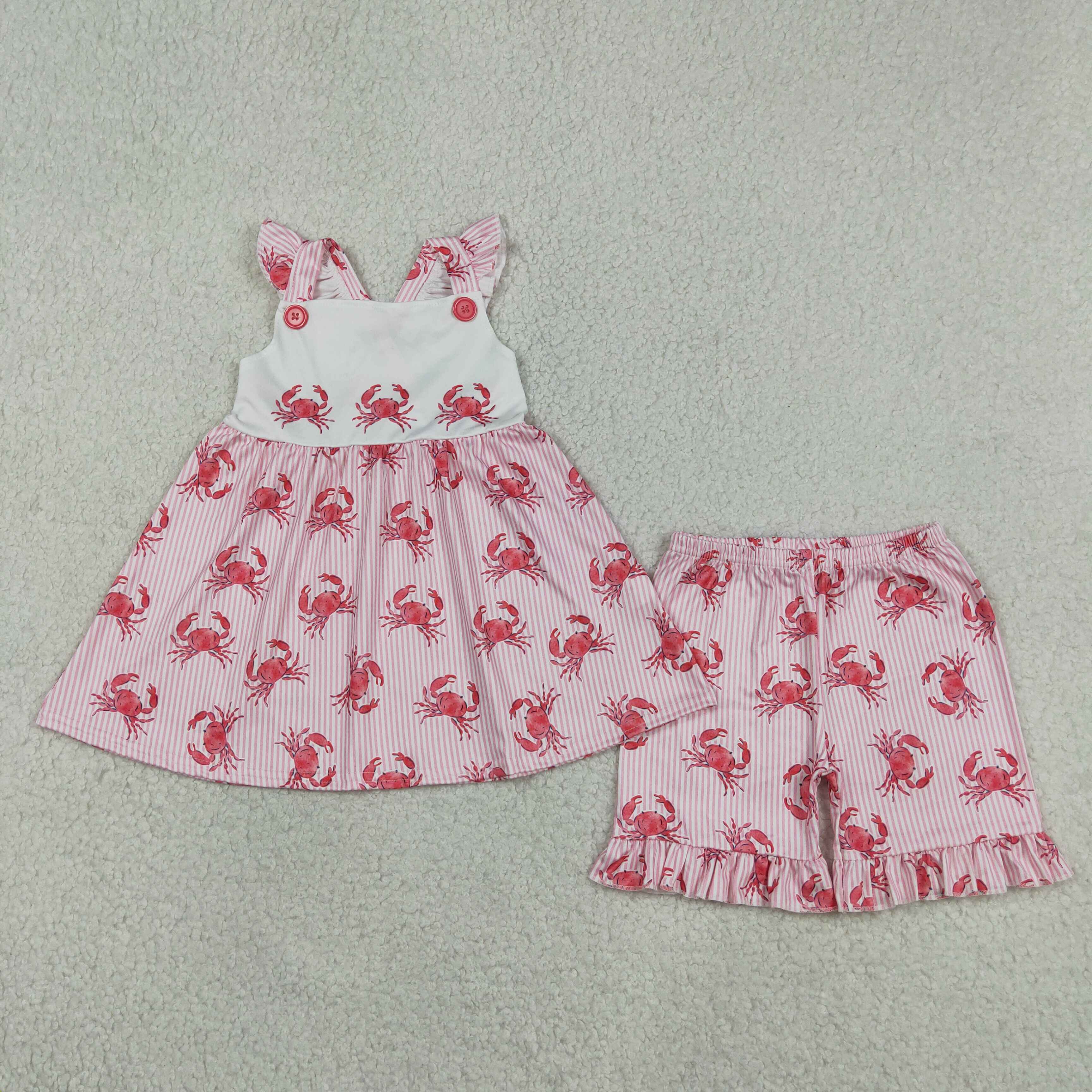 RTS Matching clothing kids floral print crayfish print baby girl summer clothing-2026.4.24