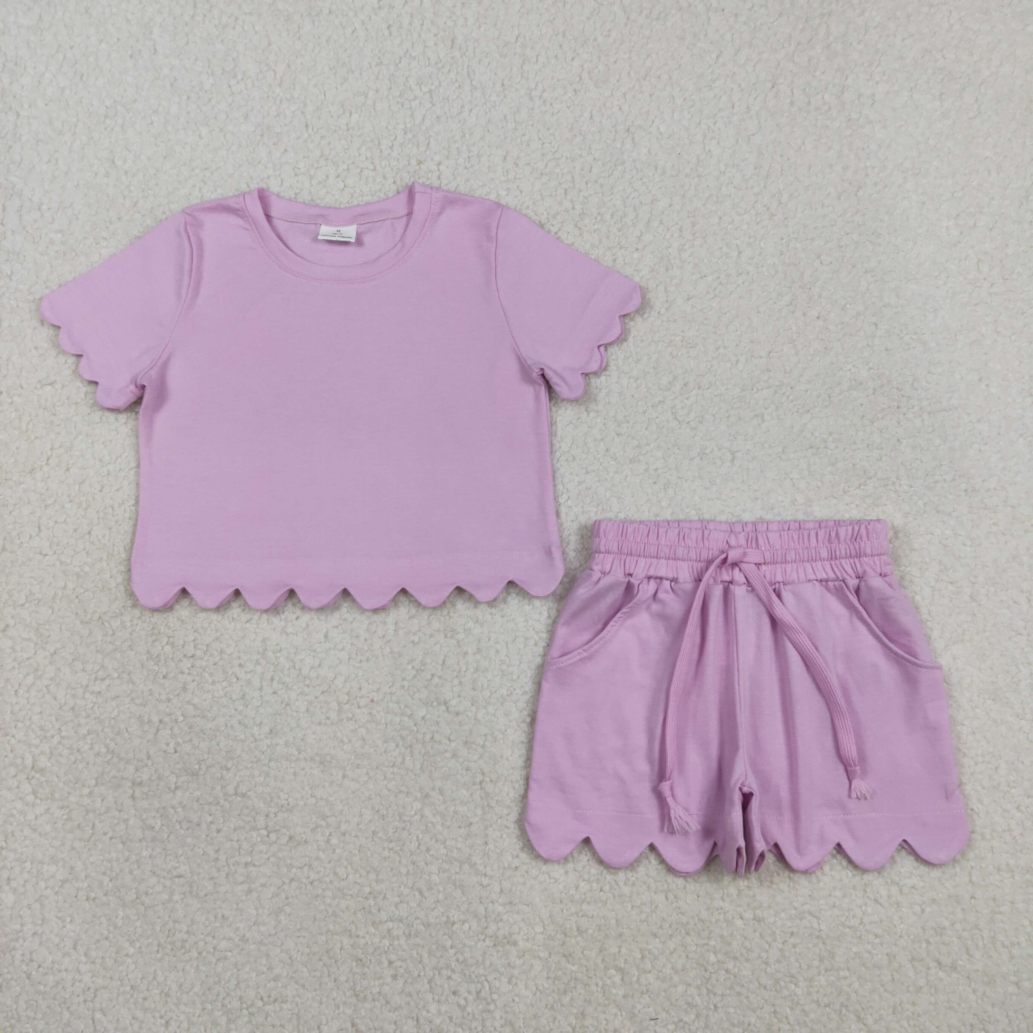 GSSO3173 RTS kids clothes pink cotton girl summer clothing set summer shorts set