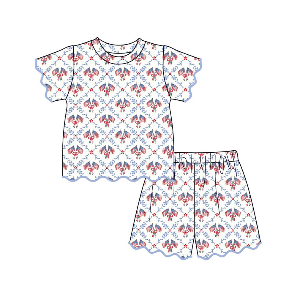 B3-1 girl summer emboridery July 4th woven shorts set-promotion $2.99 2026.3.7