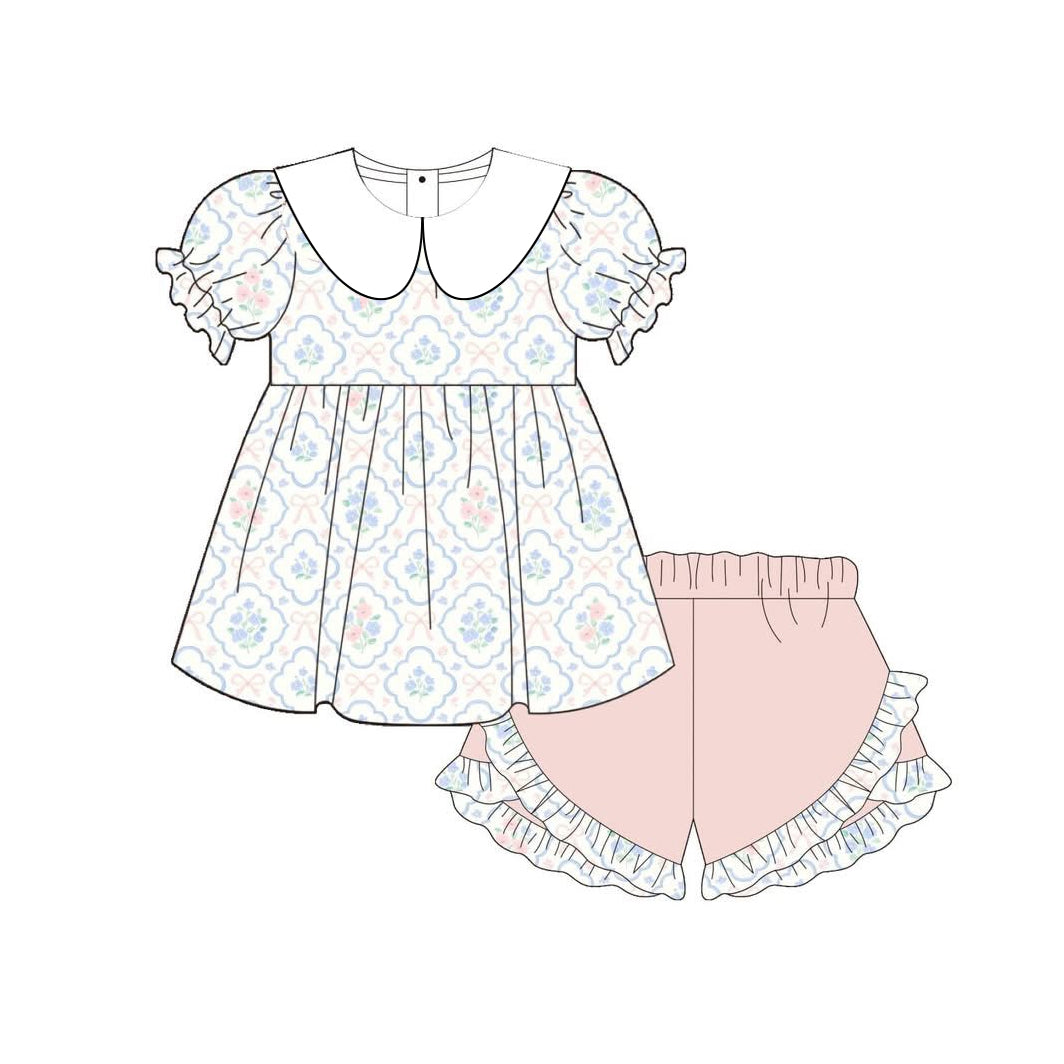 MOQ:5pcs GSSO3687 pre-order kids clothes bows print girl summer outfit clothing set-2026.3.31