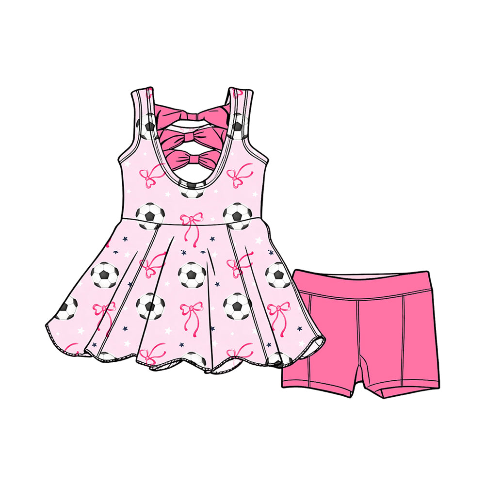 MOQ:5pcs GSSO3698 pre-order kids clothes football print girl summer outfit clothing set-2026.4.6
