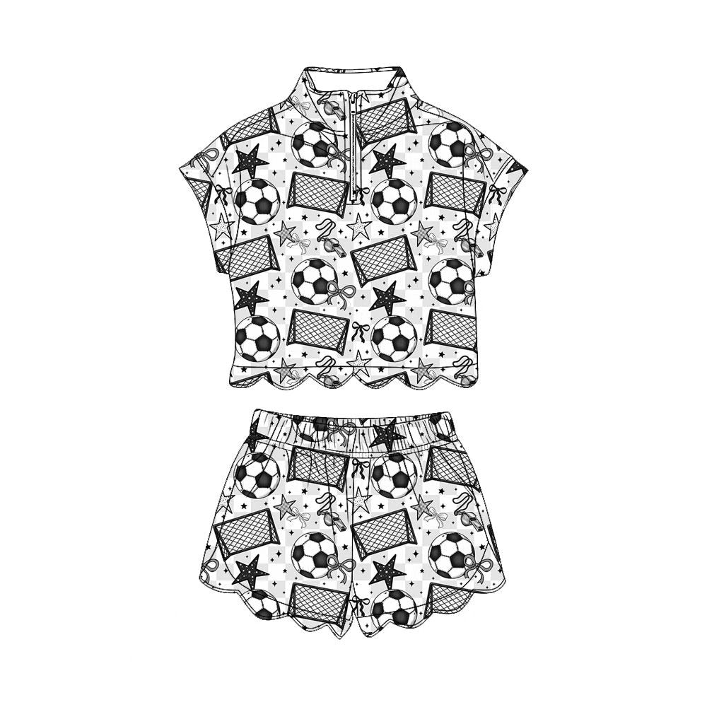MOQ:5pcs GSSO3699 pre-order kids clothes football print girl summer outfit clothing set-2026.4.6