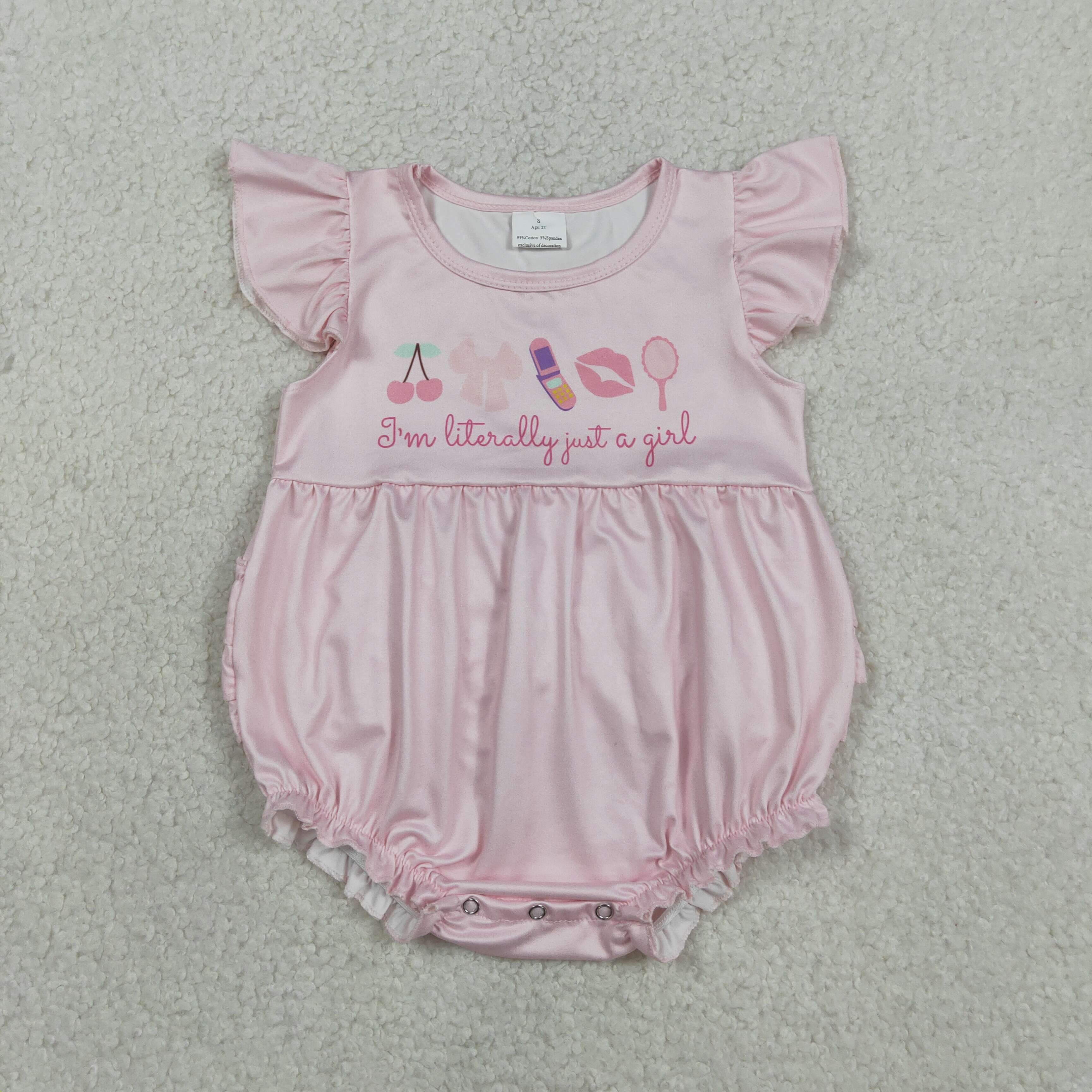 SR3825 RTS baby girl clothes make up print toddler girl summer romper pink bubble