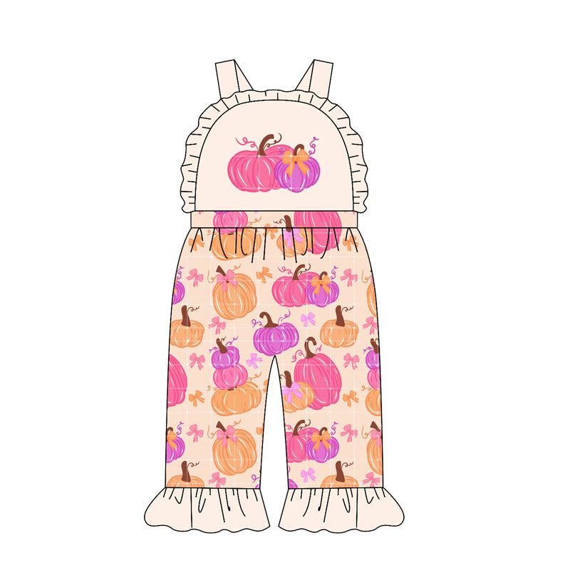 GSPO1814 RTS kids clothes floral girl summer pants set ruffels pants outfit