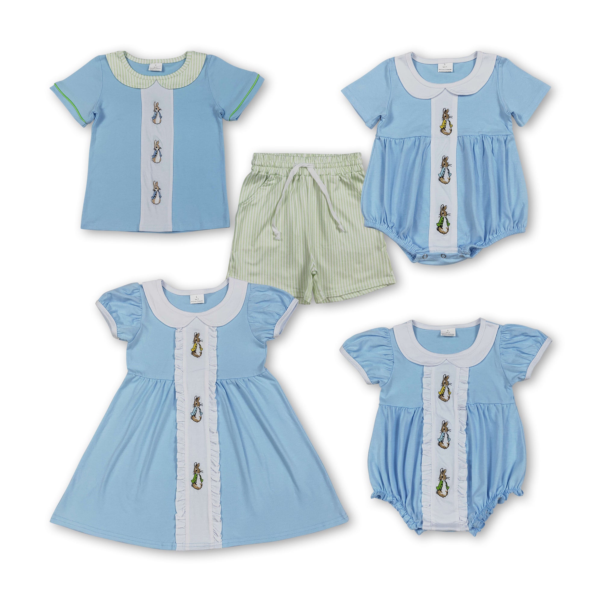 RTS Matching kids clothing embroidery bunny print clothing baby easter summer clothing-2026.3.30
