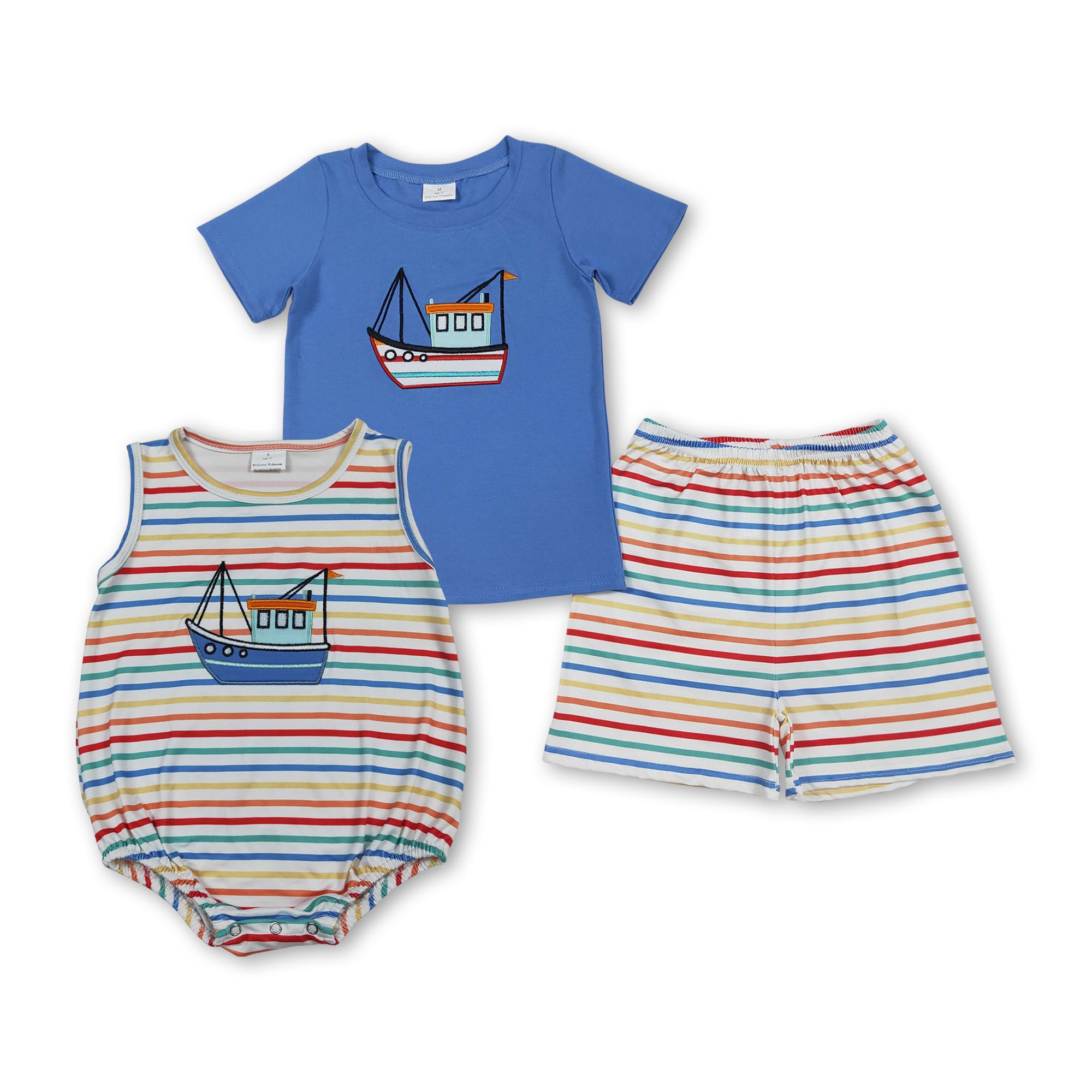 RTS kids matching clothing embroidery sailing boat print clothing baby boy summer clothing-2026.2.5