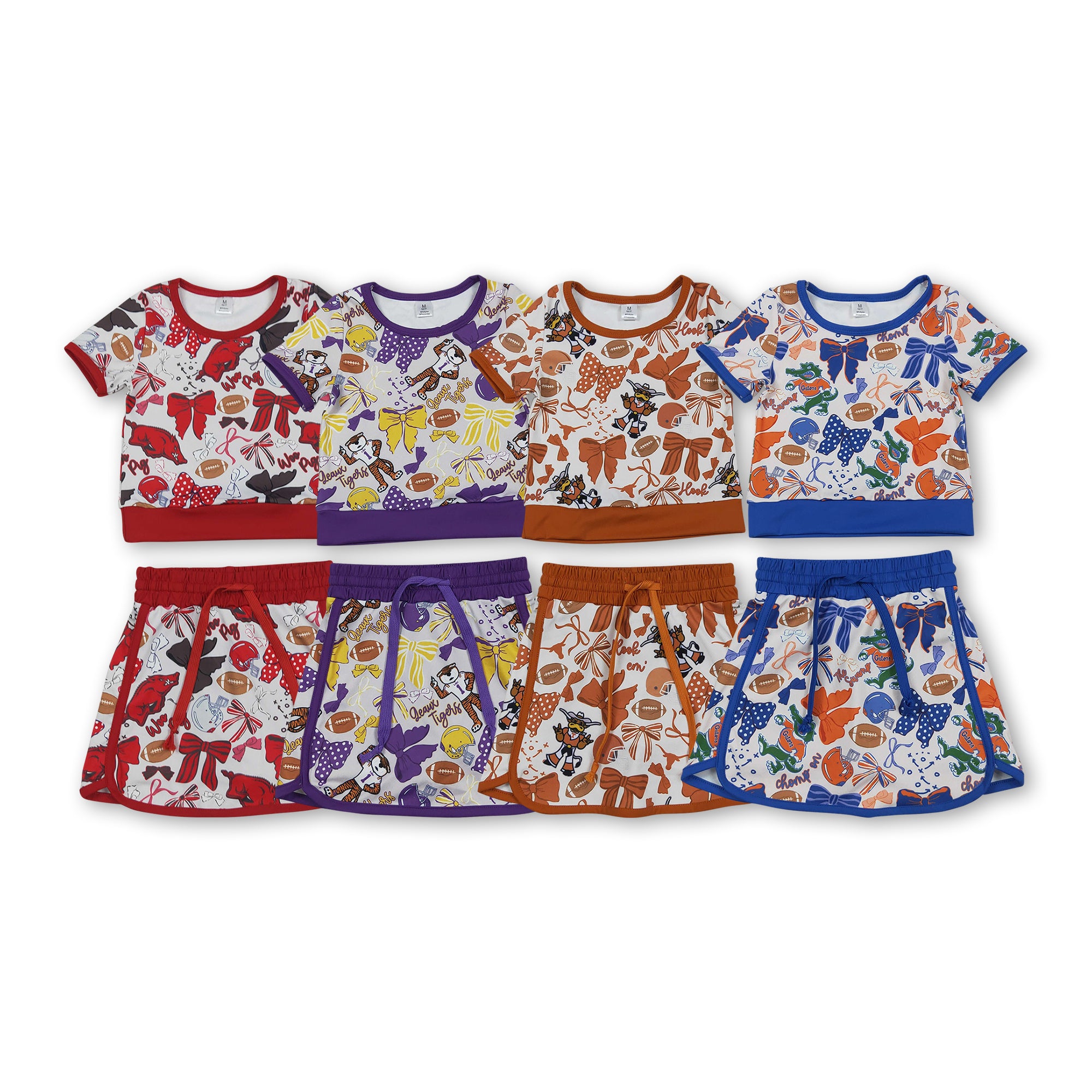 GSSO3094 RTS toddler girl clothes bows print girl 4th of July summer set summer shorts set