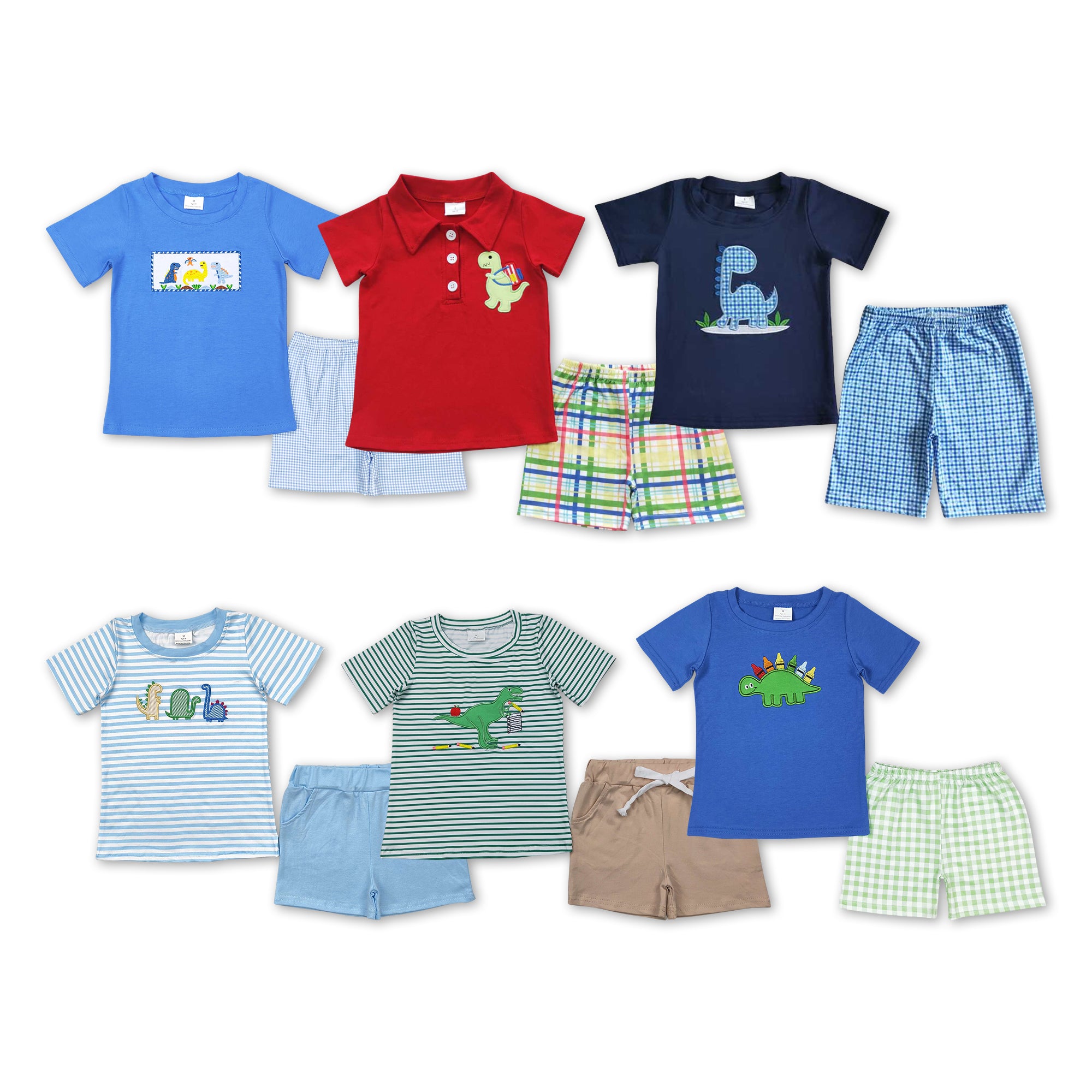 RTS toddler clothes matching clothing embroidery dino crayon print set boys back to shcool day summer clothing-2026.2.28