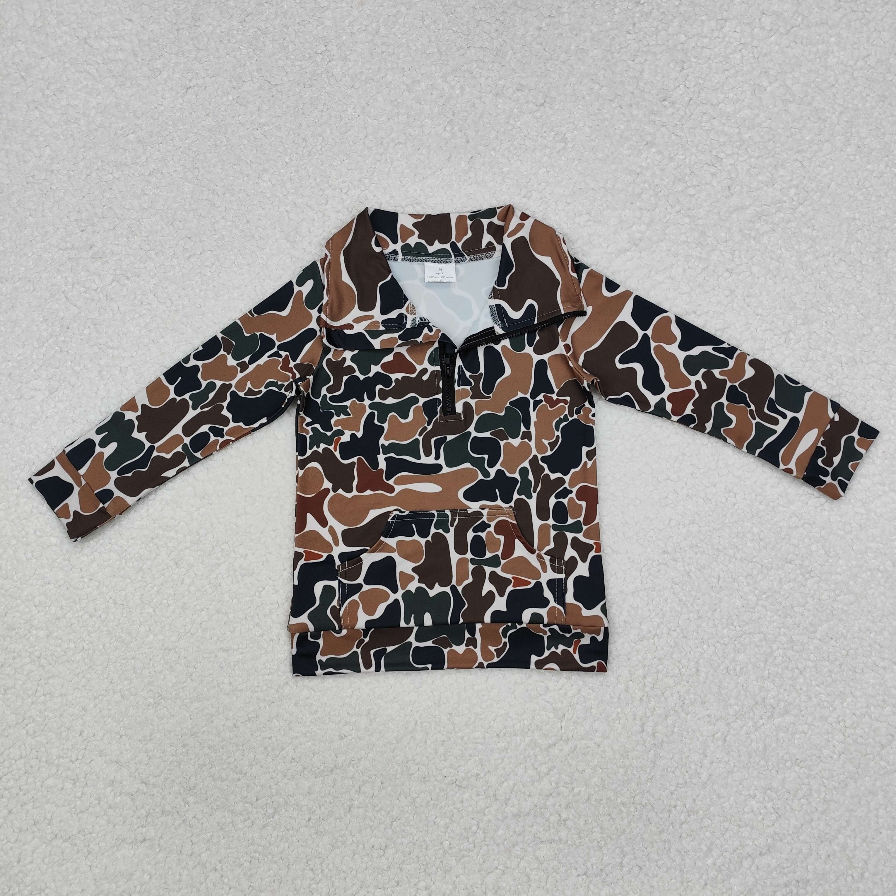 BT1038 RTS toddler boy clothes camouflage boy winter zipper top pollover