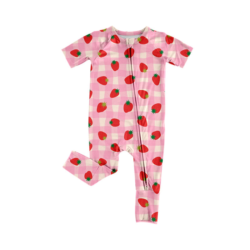 MOQ:5pcs SR3963 pre-order baby girl clothes strawberry print toddler girl summer romper-2026.1.12