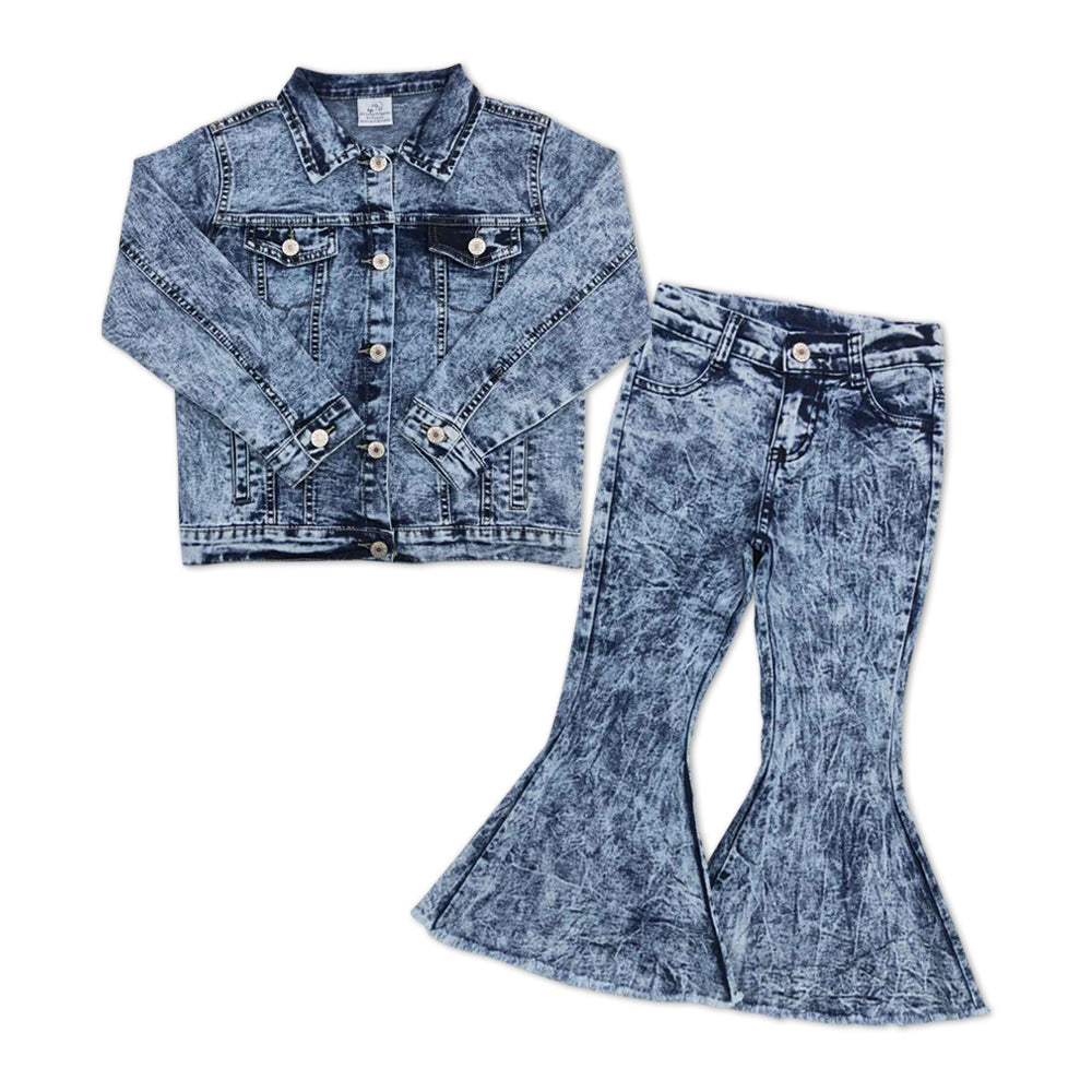 GLP1139 baby girl clothes blue denim girl bell bottom outfit