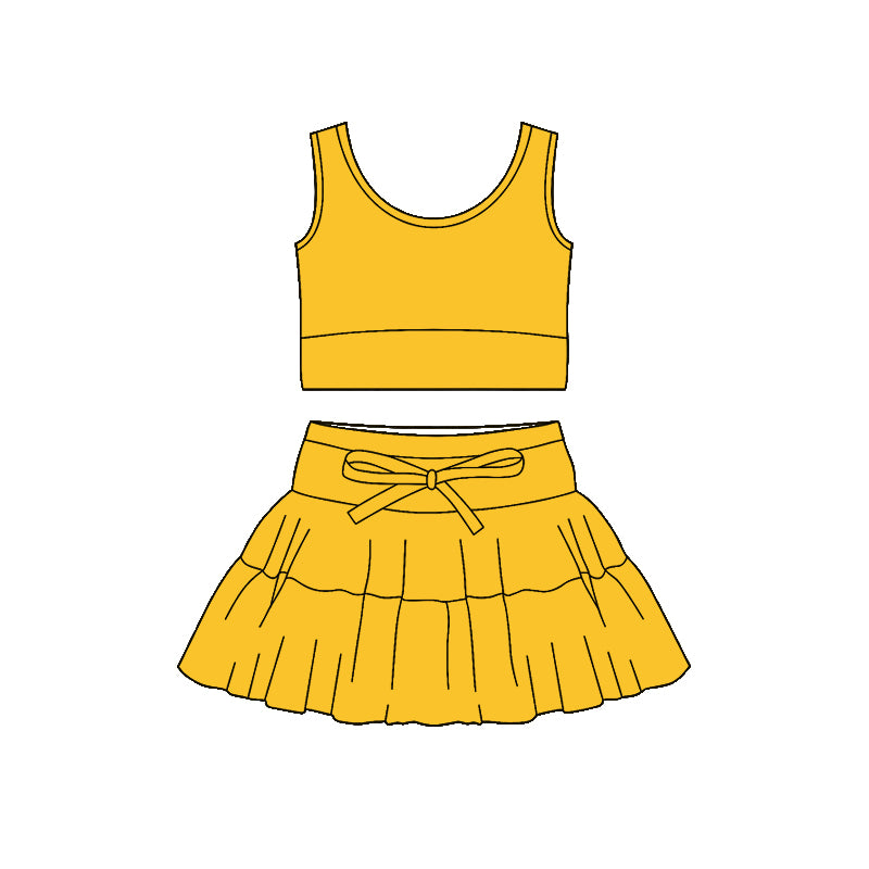 MOQ:5pcs GSD3618 pre-order baby girl clothes yellow print toddler girl yoga skirt outfit-2026.1.12