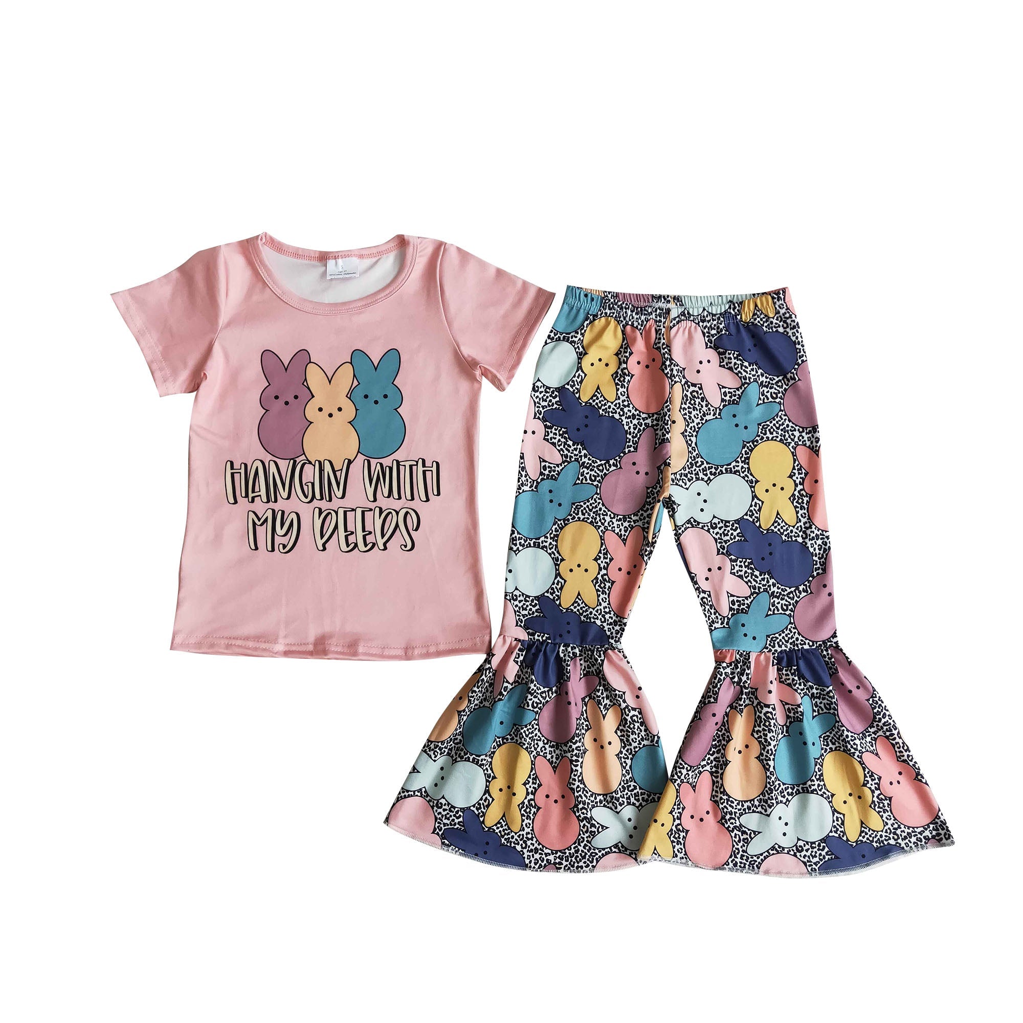 GSPO1347 baby girl clothes bunny girls easter bell bottoms outfit toddler easter clothes