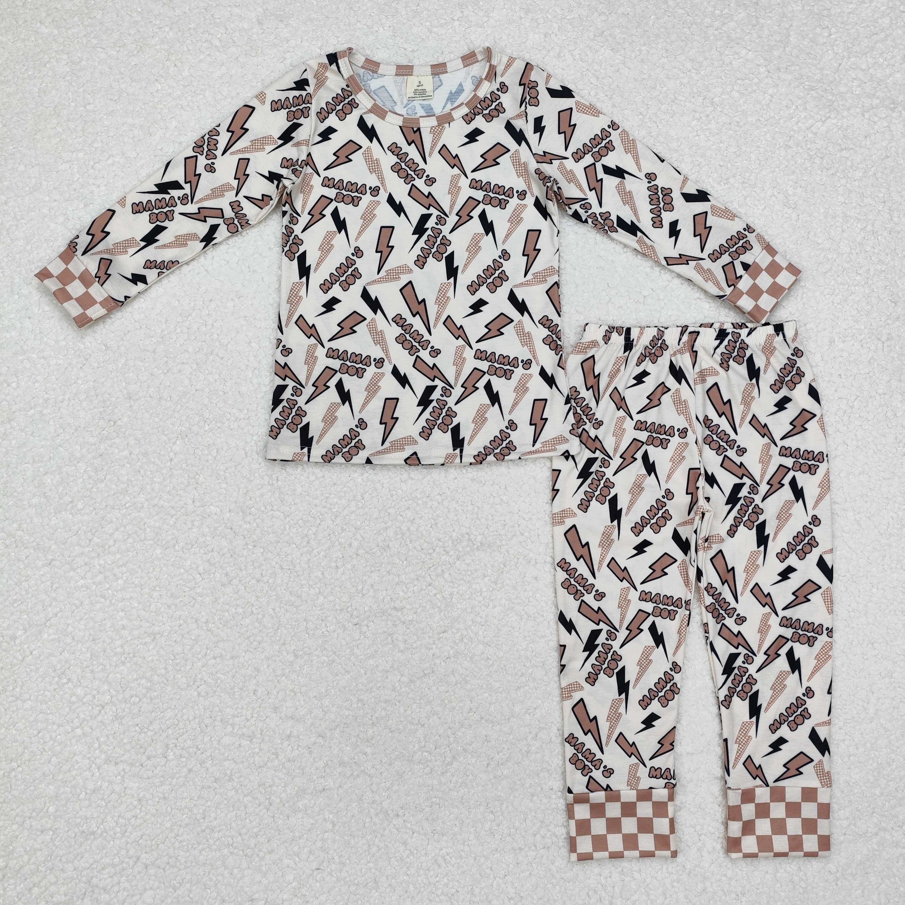BLP0949 RTS toddler boy clothes brown mama's boy winter pajamas set-bamboo