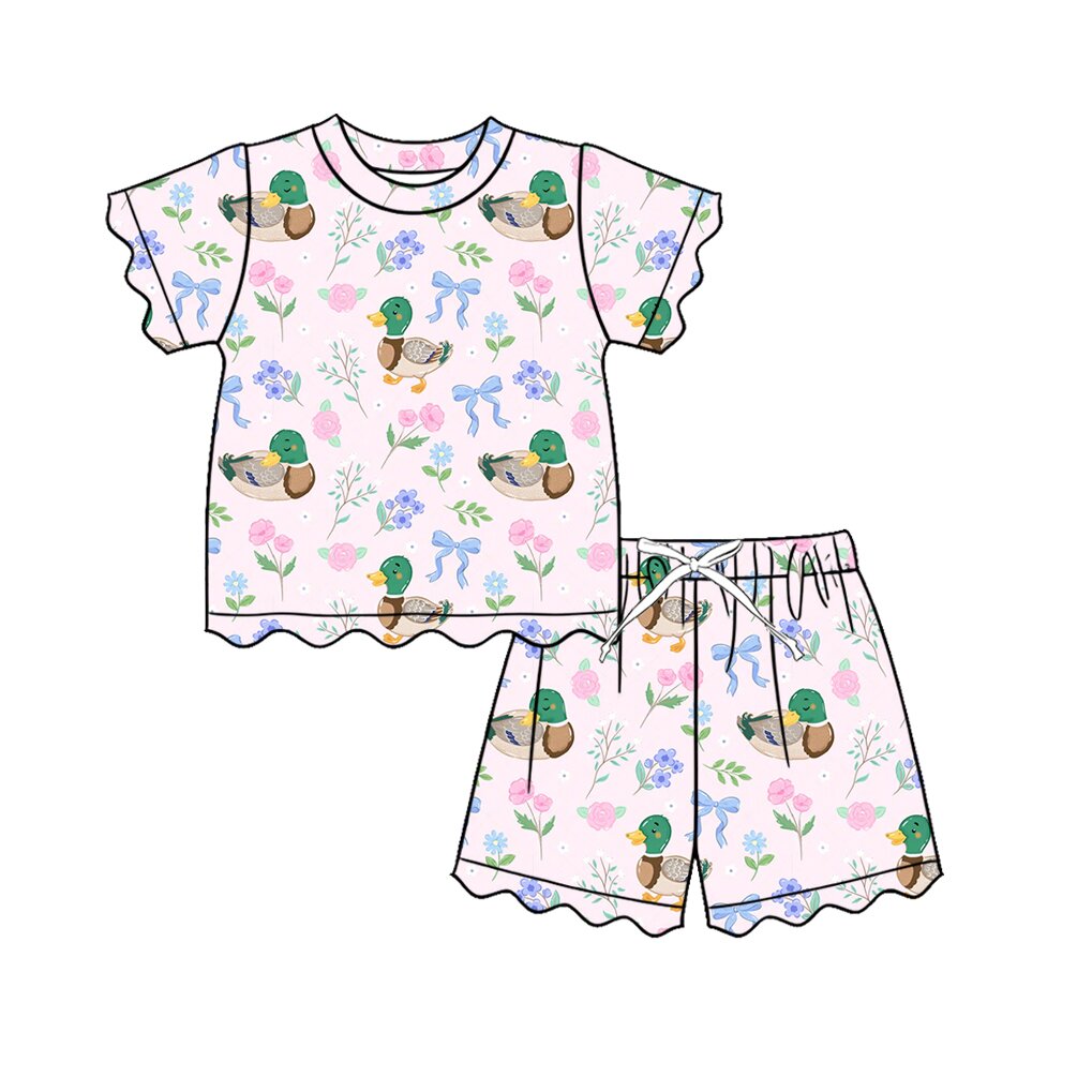 MOQ:5pcs GSSO3737 pre-order kids clothes mallard print girl summer outfit-2026.4.9