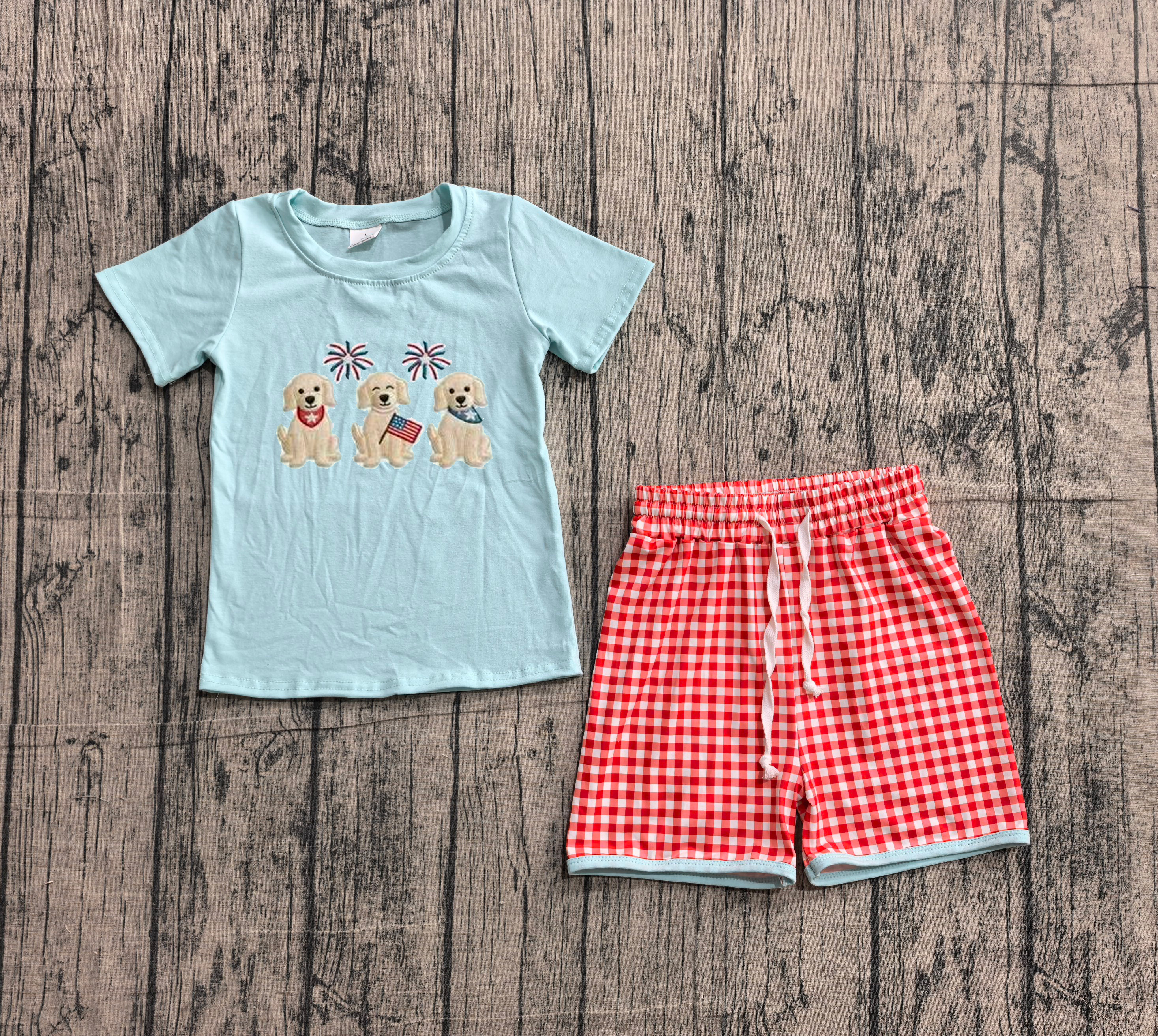 BSSO1934 pre-order kids clothes pubby print boy 4th of July summer outfit clothing embroidery set-real pic 2026.4.8