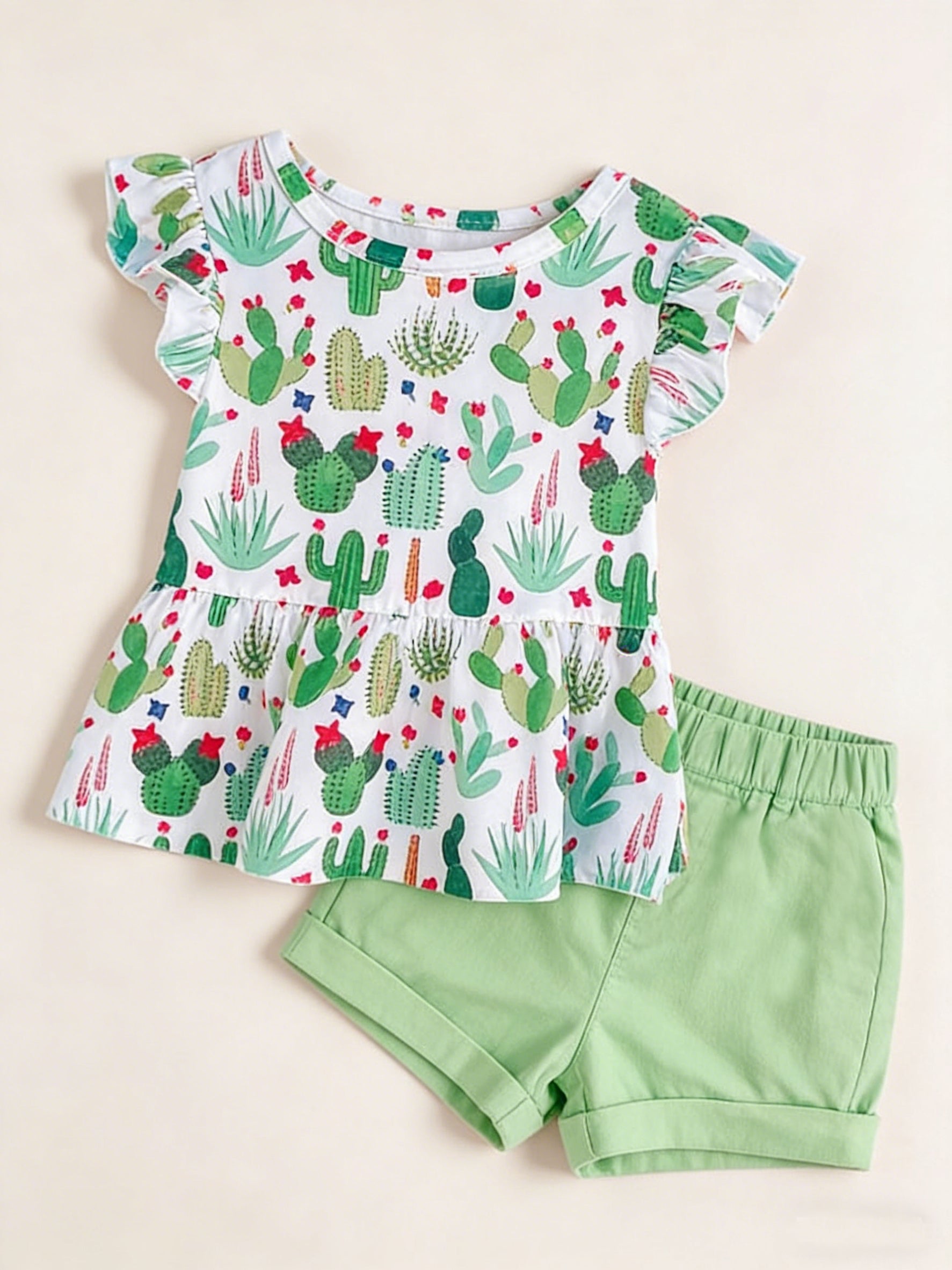 MOQ:5pcs GSD3929 pre-order toddler clothes green print girl summer short skirt set-2026.3.16