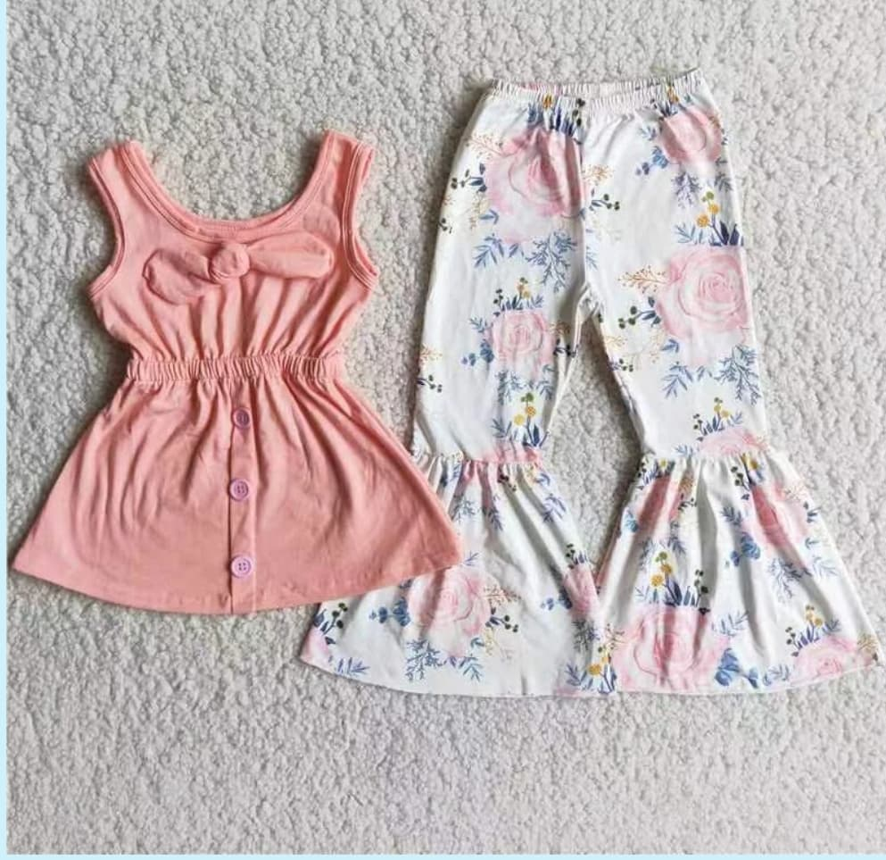 D8-15 girl coral sleeveless bow top bell bottom pants sping fall set-promotion 2024.1.6