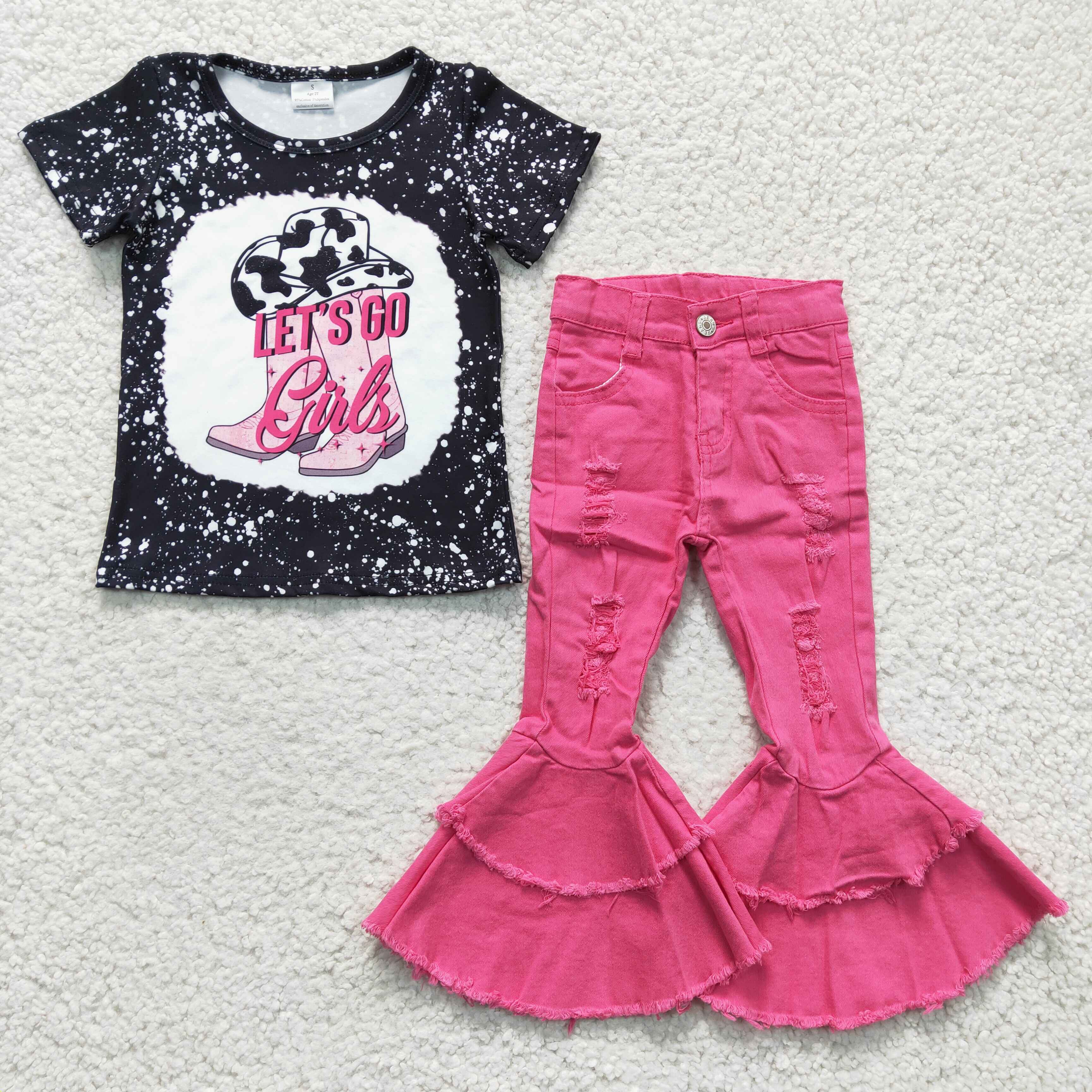 GSPO0496 kids clothes girls let's go girls shoes fall spring outfits (denim pants set)