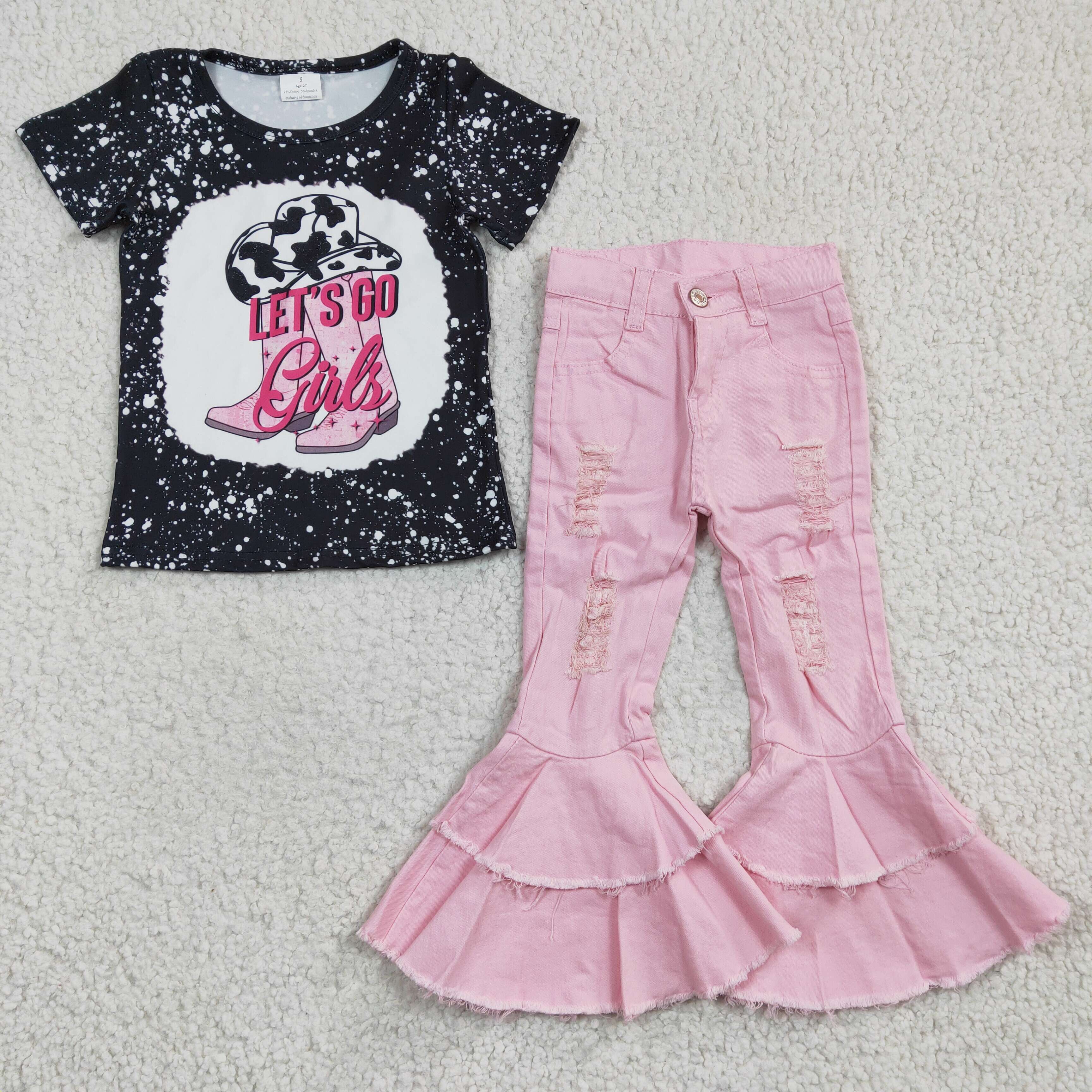 GSPO0497 kids clothes girls let's go girls shoes fall spring outfits (denim pants set)