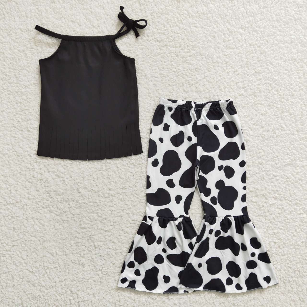 A18-4 girl white black cow sleeveless bow top bell bottom pants sping fall set-promotion 2024.2.24