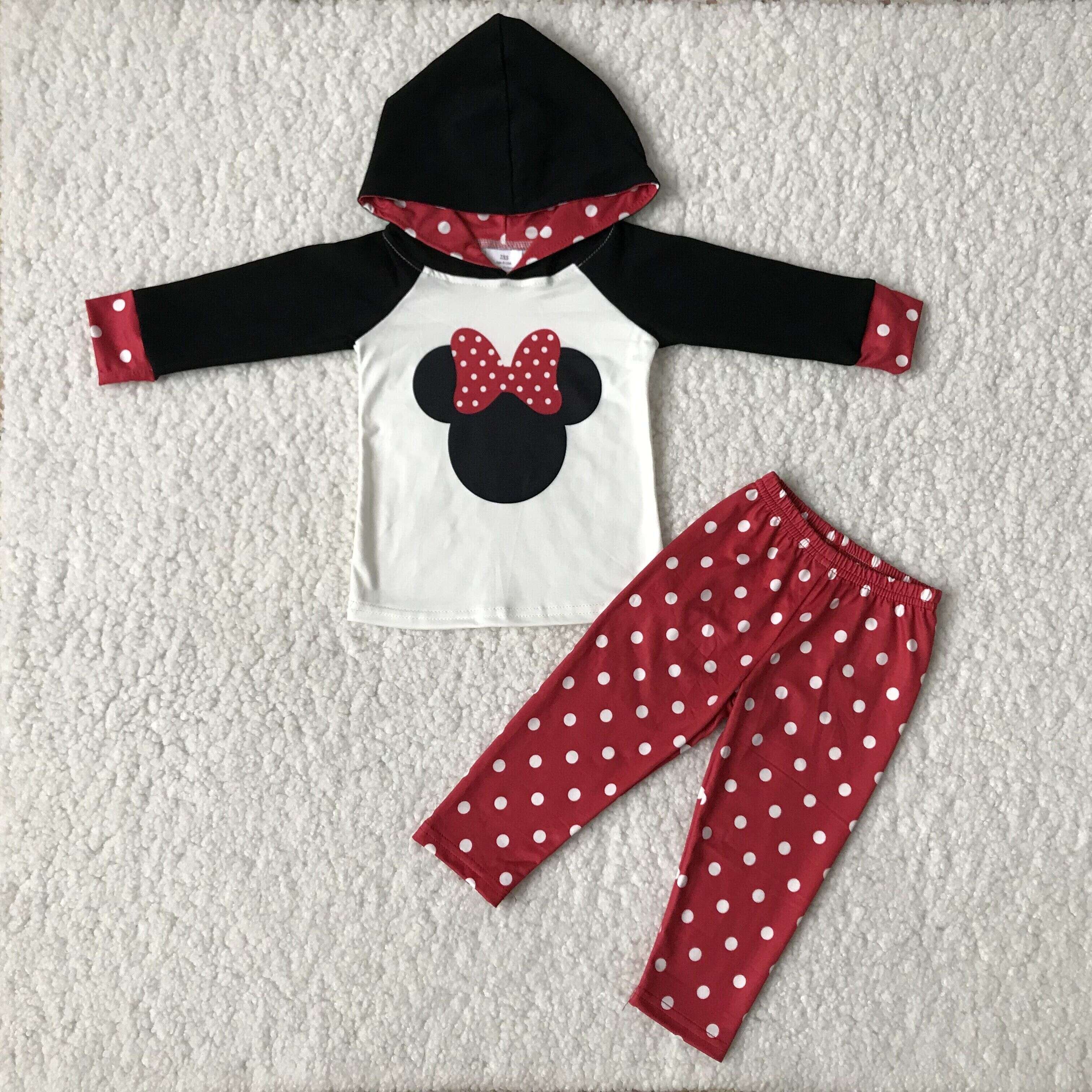girl black shirt with cow red plaid pants long sleeve set