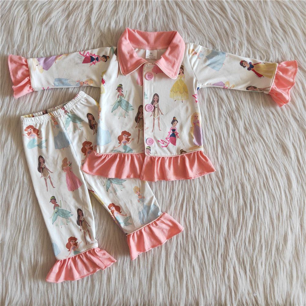 6 B9-23 Girl clothing winter pink princess pajamas long sleeve set