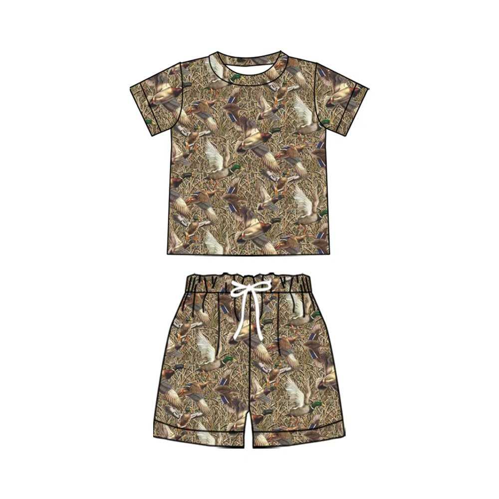 MOQ:5pcs BSSO2008 pre-order kids clothes mallard print boys summer outfit-2026.3.24