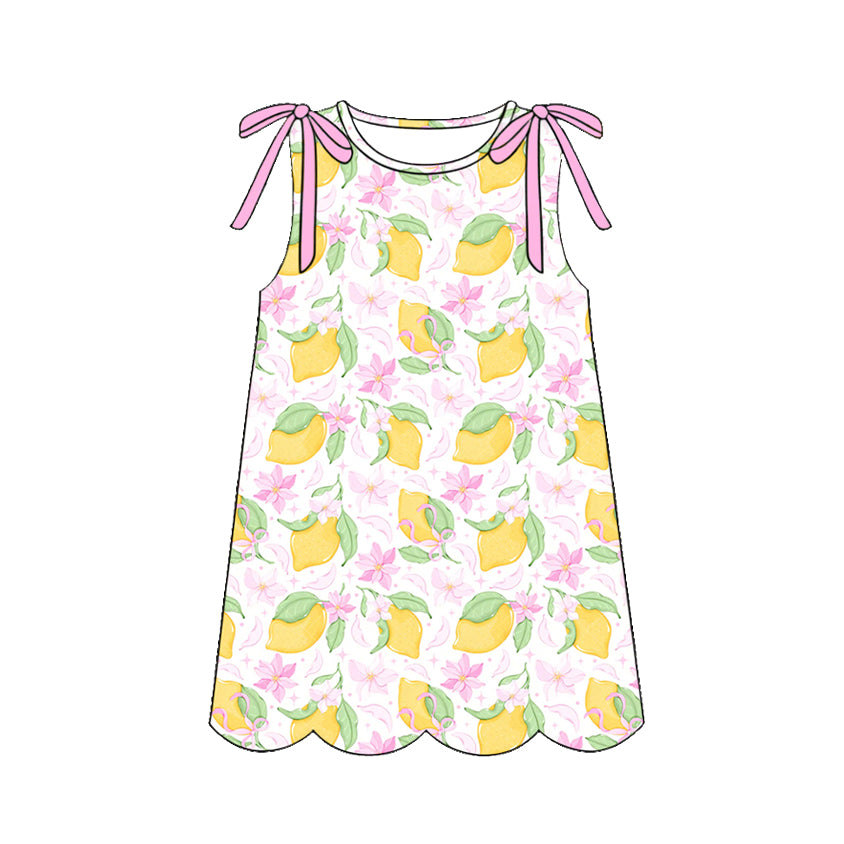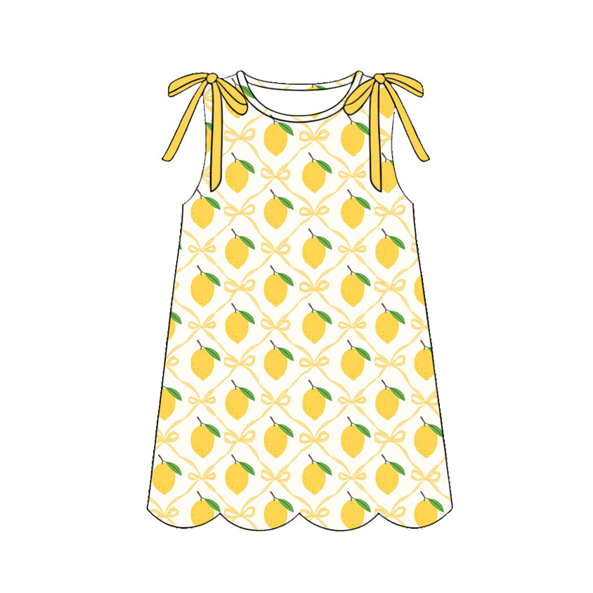 MOQ:5pcs GSD3973 pre-order toddler clothes lemon print girl summer dress-2026.3.21
