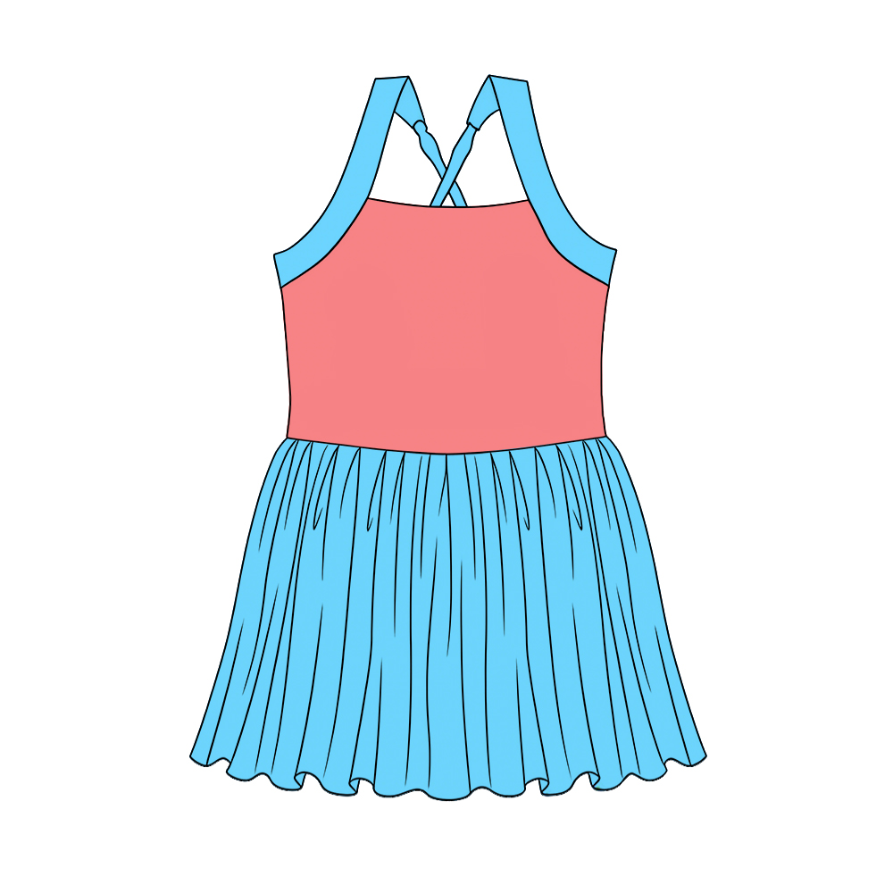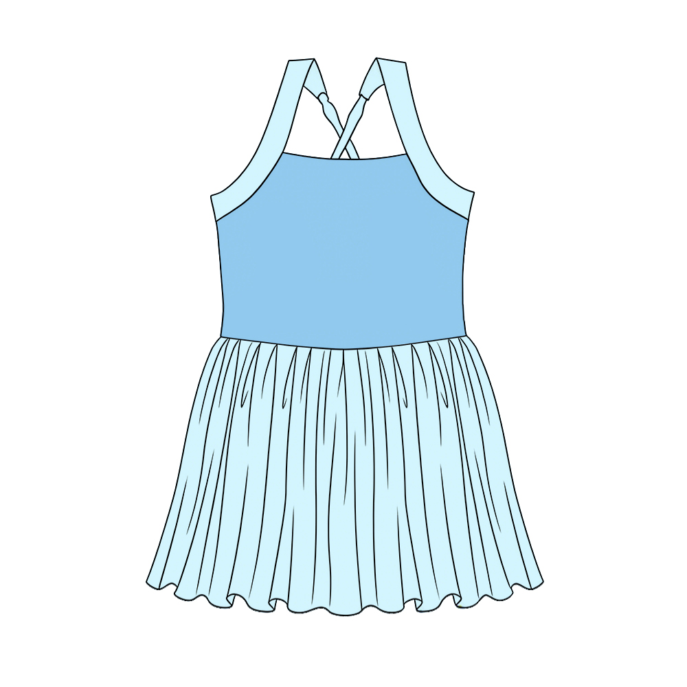 MOQ:5pcs GSD3979 pre-order toddler clothes blue print girl yoga summer dress-2026.3.21
