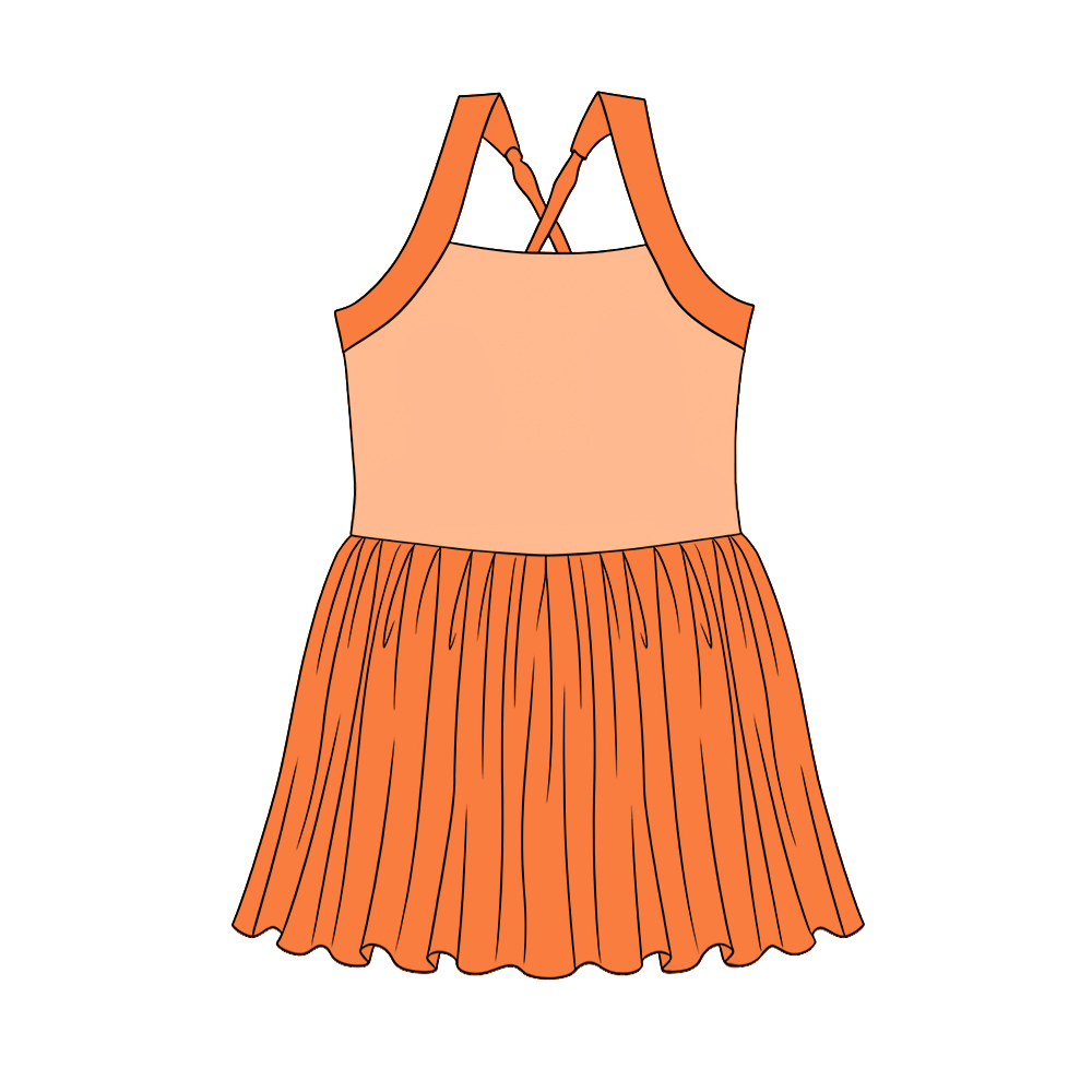 MOQ:5pcs GSD3983 pre-order toddler clothes orange print girl yoga summer dress-2026.3.21