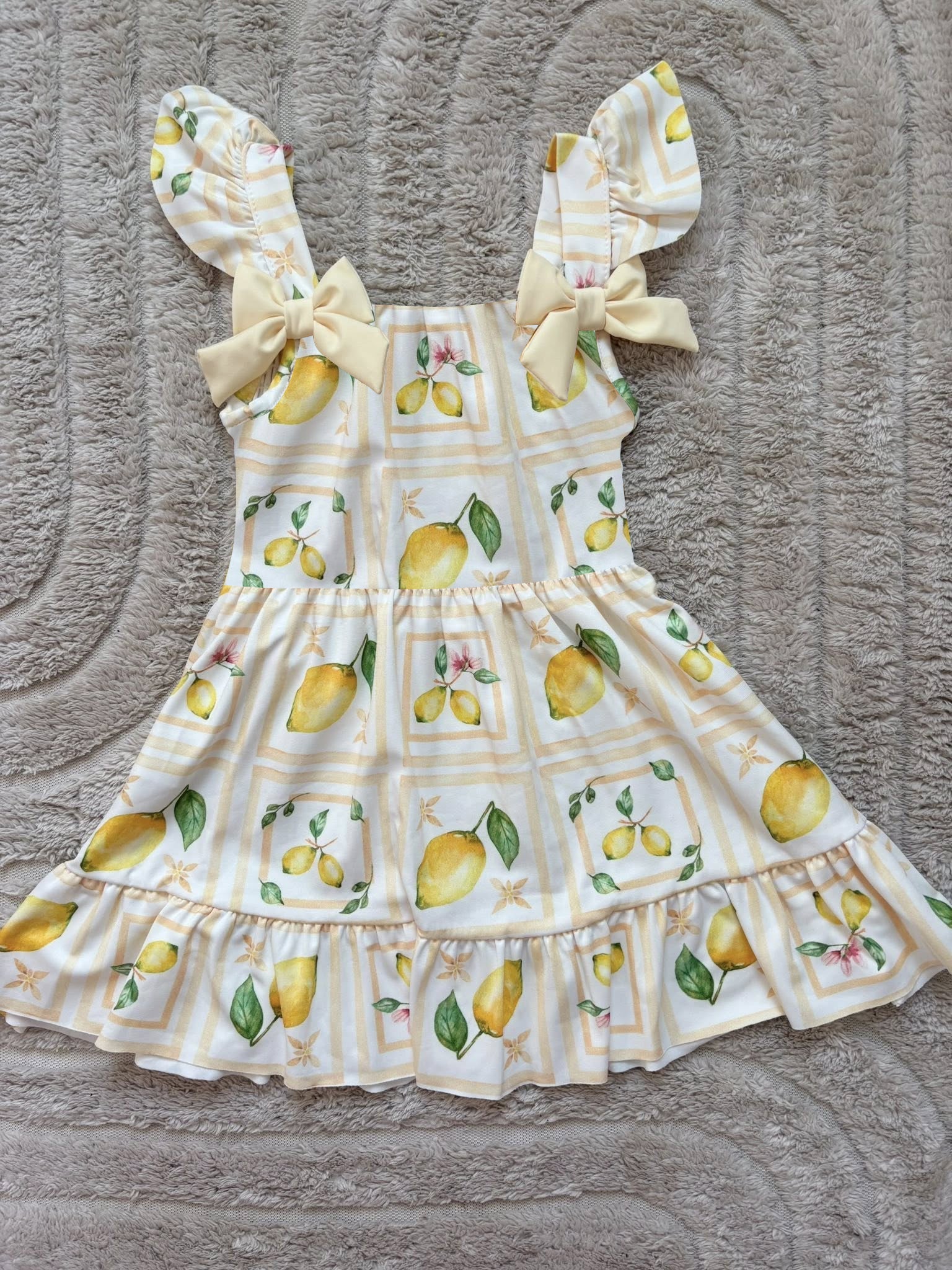 MOQ:5pcs GSD3974 pre-order toddler clothes lemon print girl summer dress-2026.3.21
