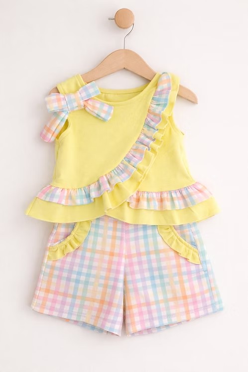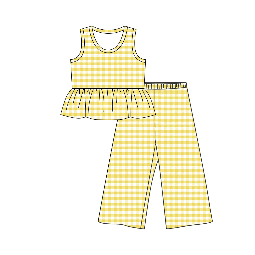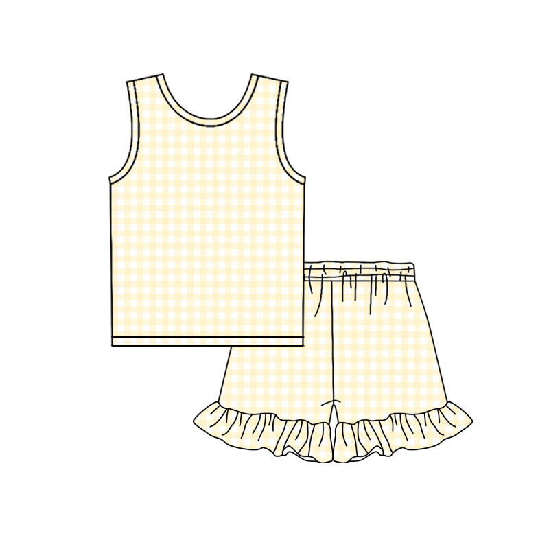 MOQ:5pcs GSSO3626 pre-order baby girl clothes yellow gingham print toddler girl summer outfit-2026.3.21