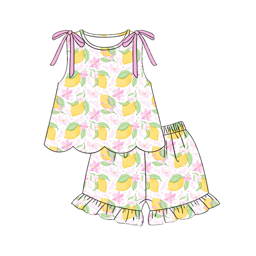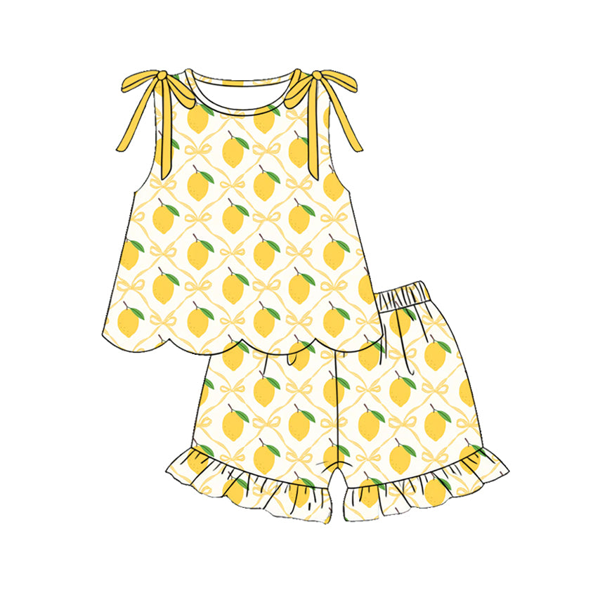 MOQ:5pcs GSSO3611 pre-order toddler clothes lemon print girl summer short set-2026.3.21