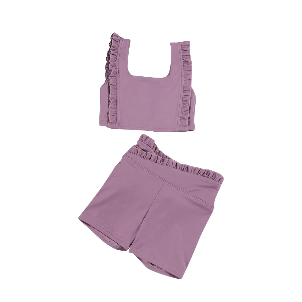 MOQ:5pcs GSSO3622 pre-order baby girl clothes purple print toddler girl yoga summer outfit-2026.3.21