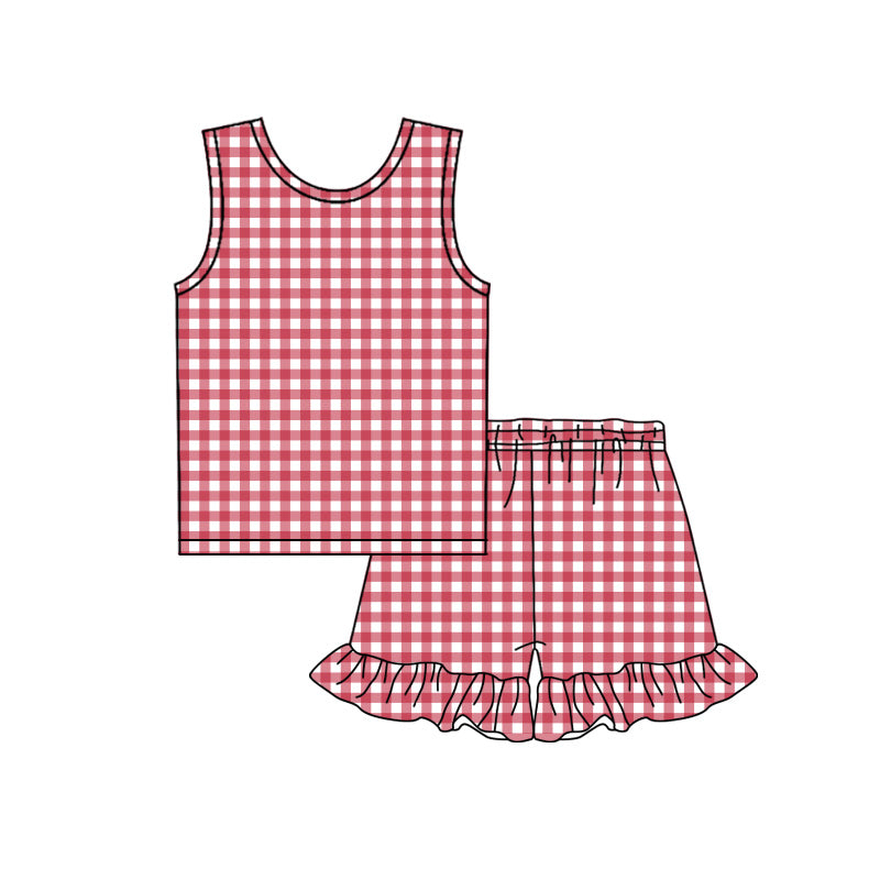 MOQ:5pcs GSSO3623 pre-order baby girl clothes red gingham print toddler girl summer outfit-2026.3.21