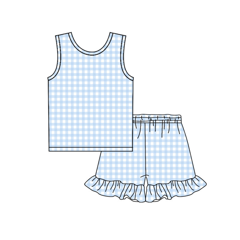 MOQ:5pcs GSSO3624 pre-order baby girl clothes blue gingham print toddler girl summer outfit-2026.3.21