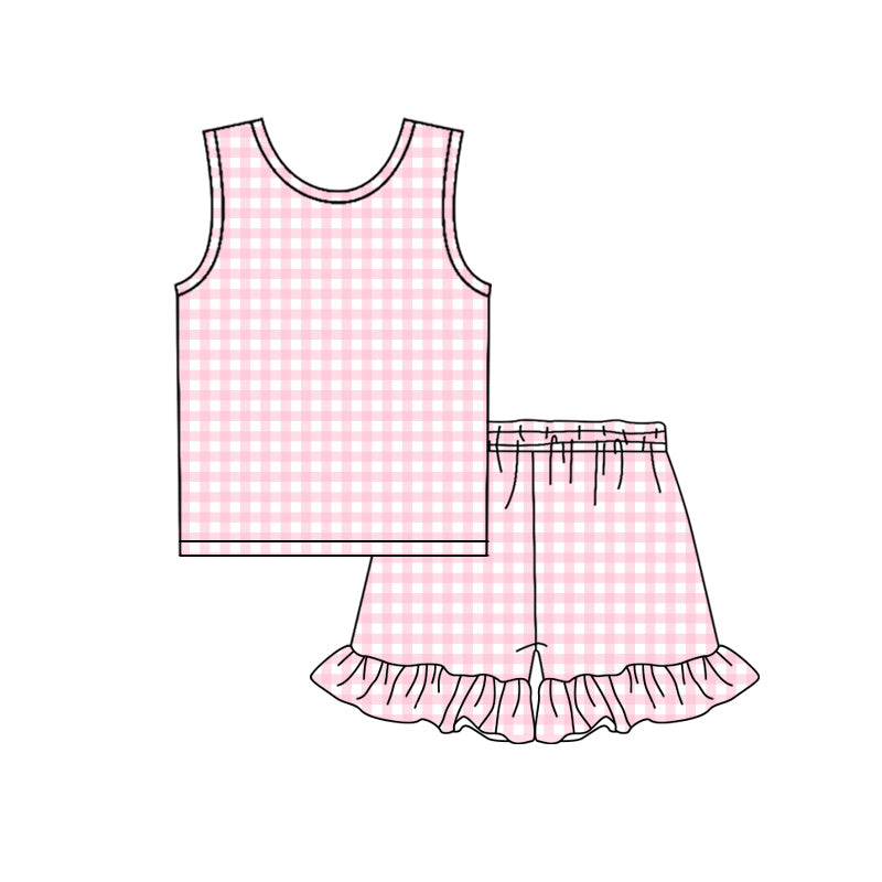 MOQ:5pcs GSSO3625 pre-order baby girl clothes pink gingham print toddler girl summer outfit-2026.3.21