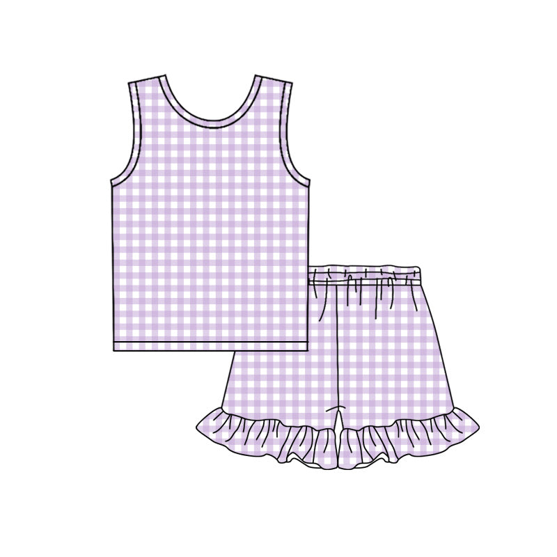 MOQ:5pcs GSSO3627 pre-order baby girl clothes purple gingham print toddler girl summer outfit-2026.3.21
