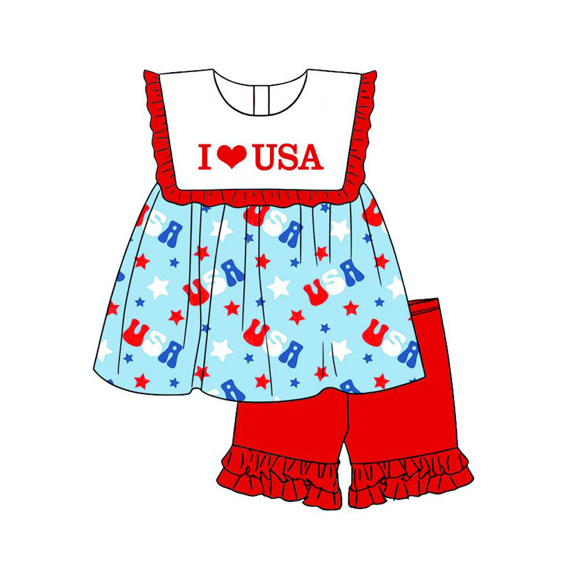 MOQ:5pcs GSSO3637 pre-order baby girl clothes flag print toddler girl 4th of July summer outfit-2026.3.24