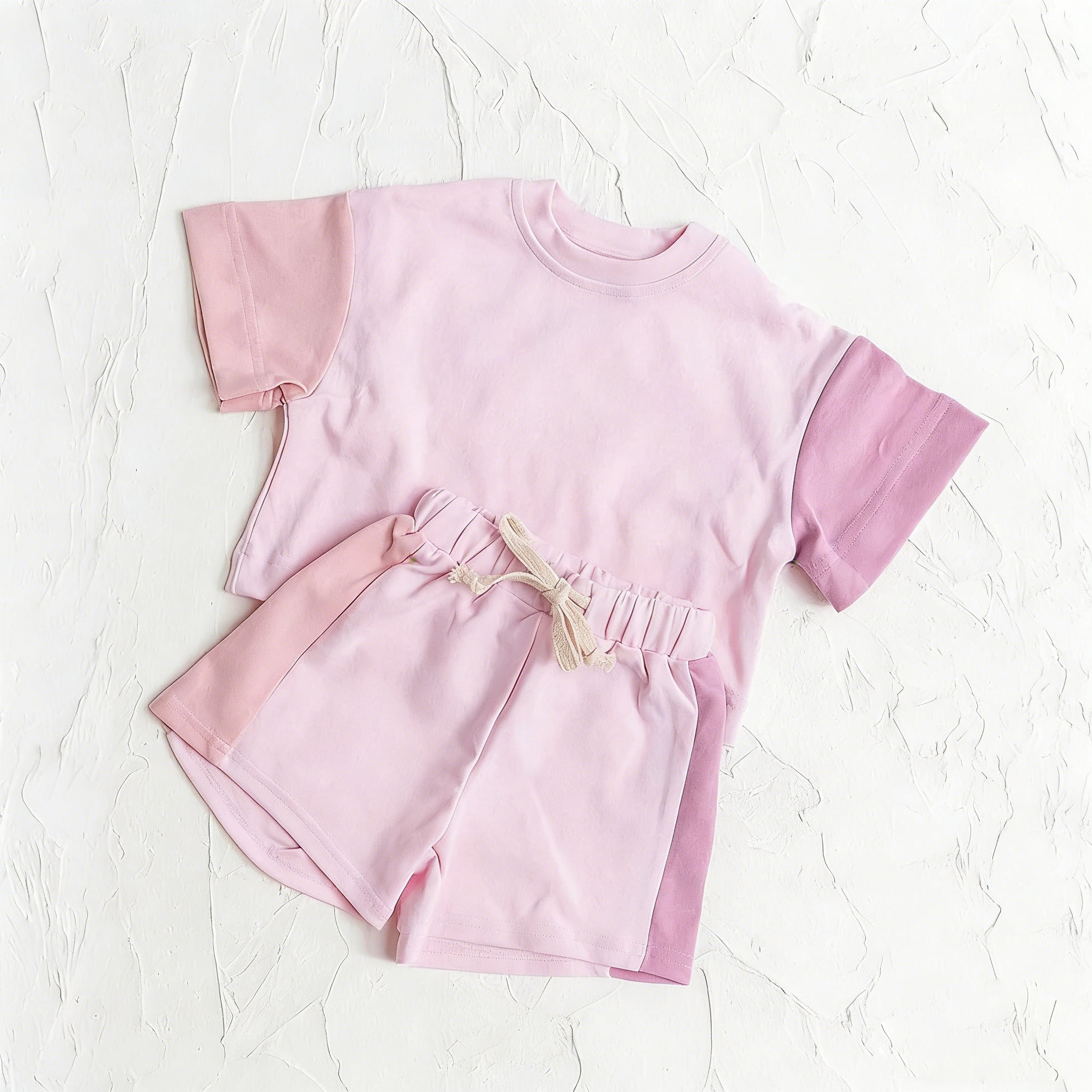 MOQ:5pcs GSSO3614 pre-order toddler clothes purple print girl summer short set-2026.3.21