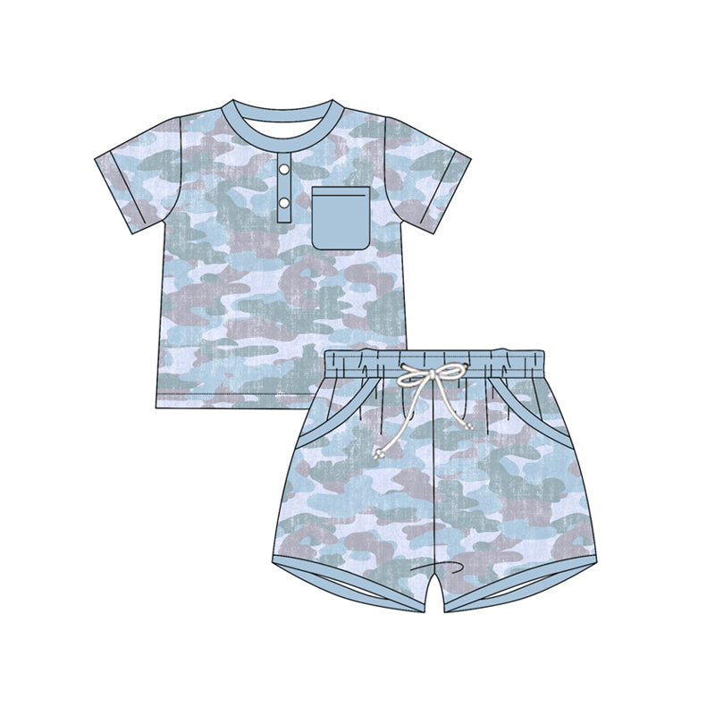 MOQ:5pcs BSSO1937 pre-order kids clothes camo print boy summer outfit clothing set-2026.2.25