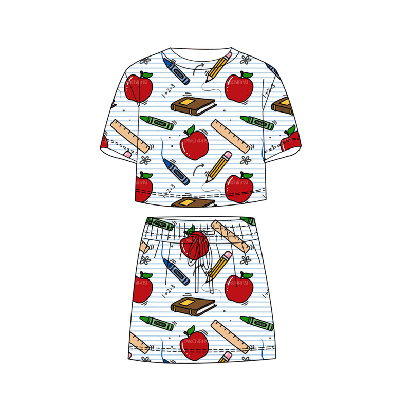 MOQ:5pcs GSD3823 pre-order toddler clothes apple print girl back to school summer dress-2026.2.25