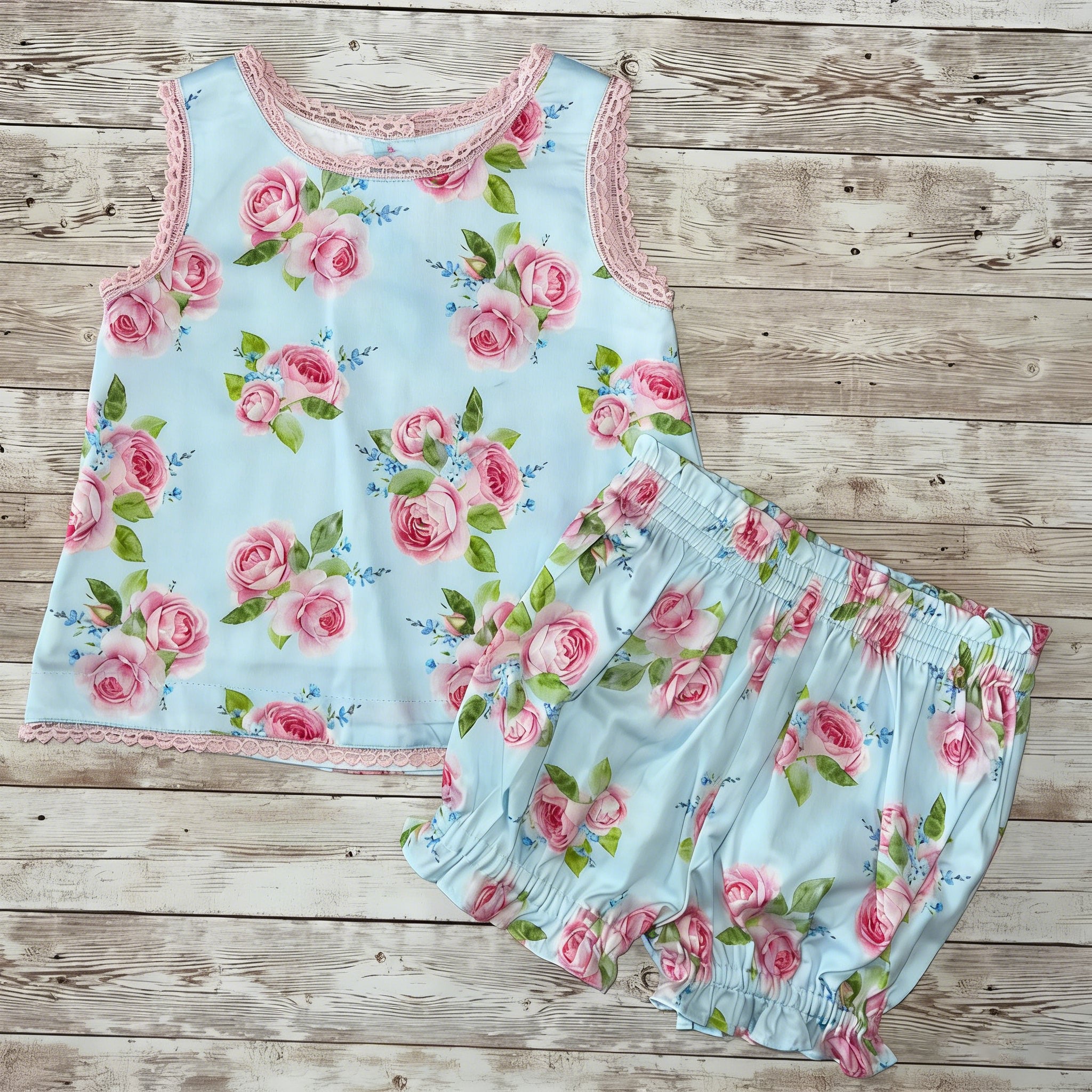 MOQ:5pcs GSSO3447 pre-order kids clothes flower print girl summer outfit clothing set-2026.3.2
