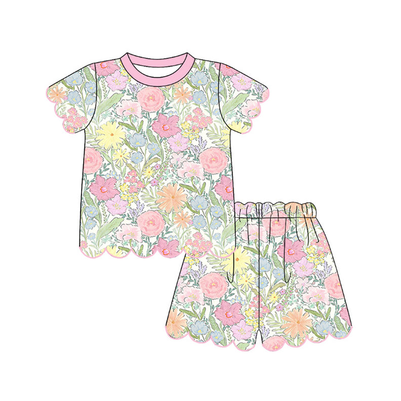 MOQ:5pcs GSSO3543 pre-order kids clothes flower print girl summer outfit clothing set-2026.3.9